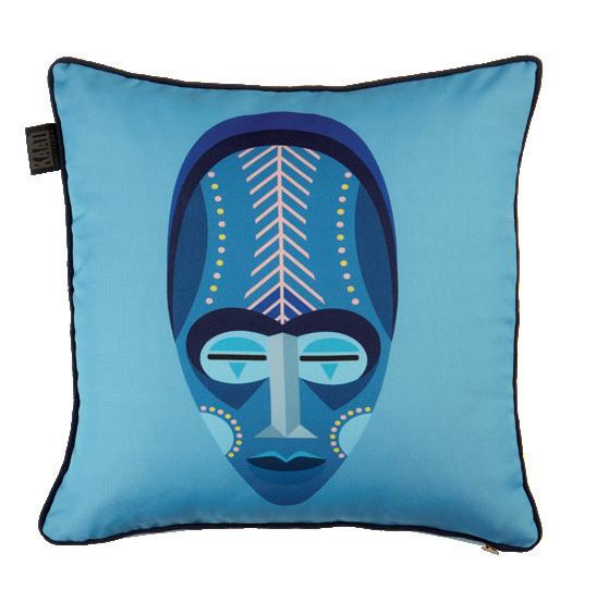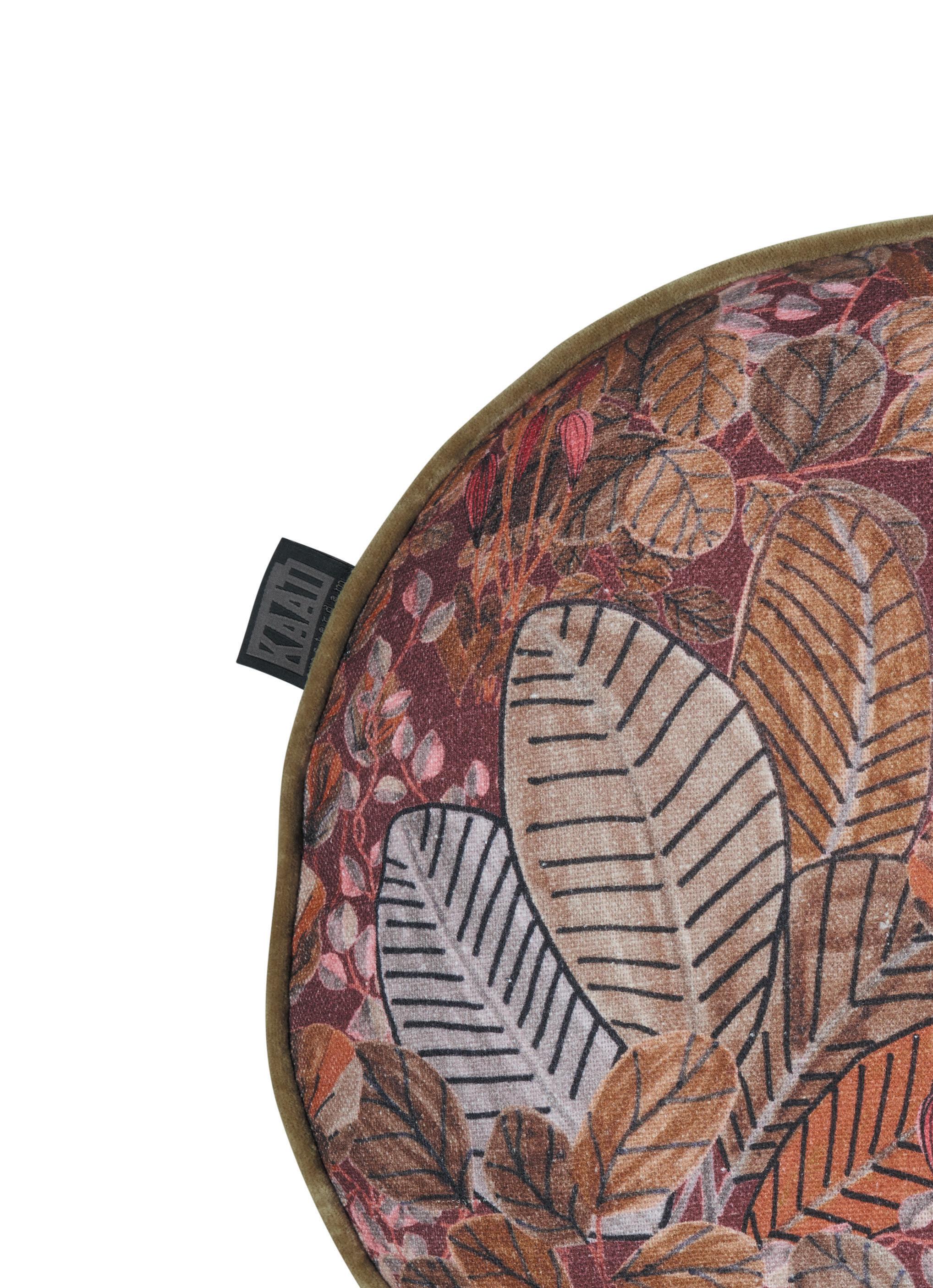 Asa Multi 100% cotton slub. Digital print on front and uni dyed back. With velvet piping. 40 cm.