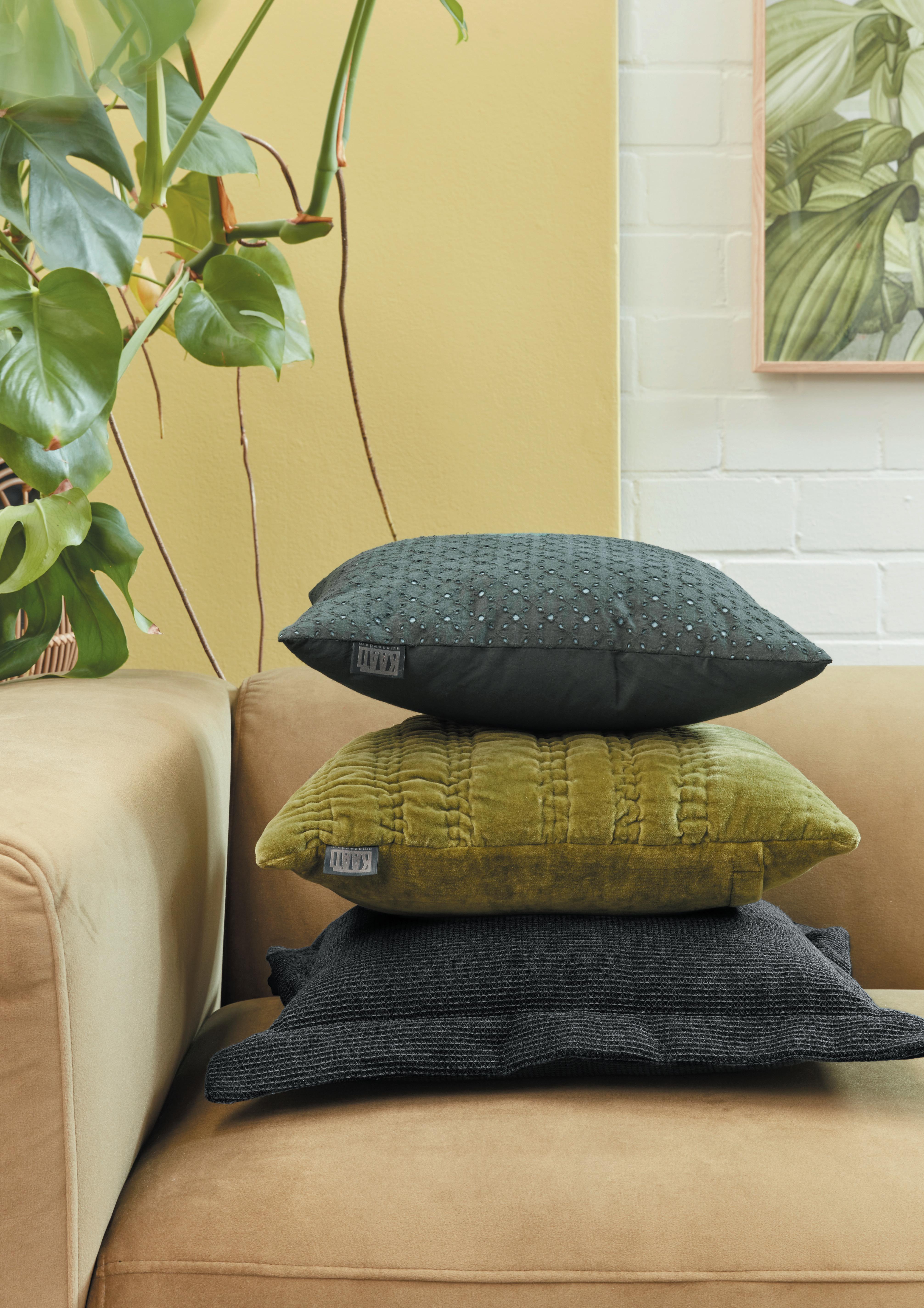 3. Aura Green 100% cotton. Pleated velvet front and uni dyed velvet back. 30x50 cm.