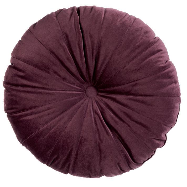 3. Mandarin Purple 100% polyester velvet. Tufted button in cushion centre. 40 cm.