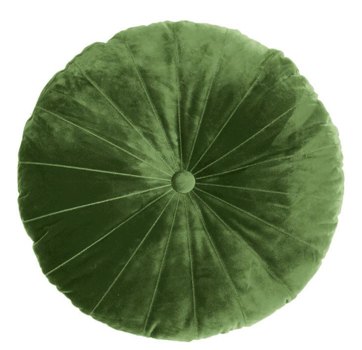 2. Mandarin Green 100% polyester velvet. Tufted button in cushion centre. 40 cm.