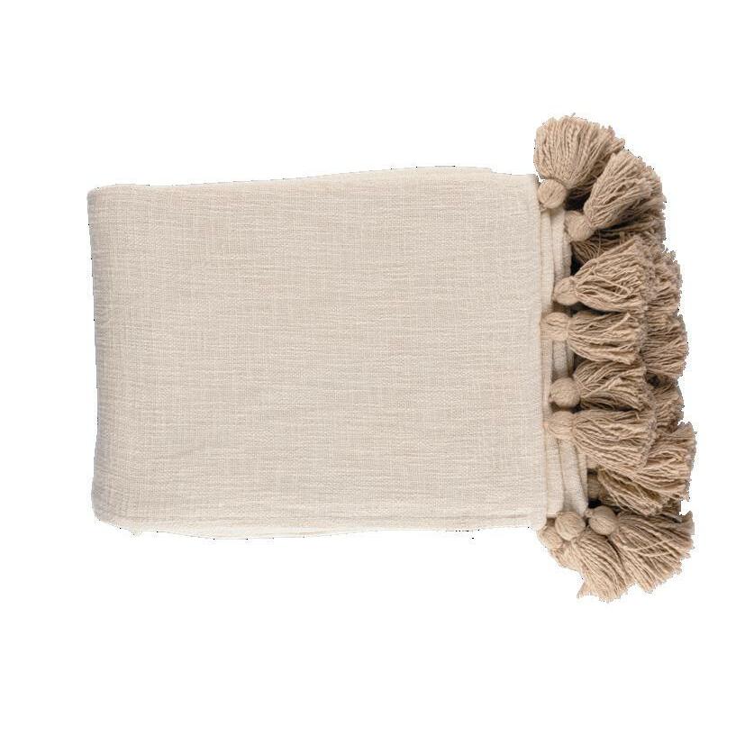 100% cotton. Uni dyed with tassels. 130x170 cm.