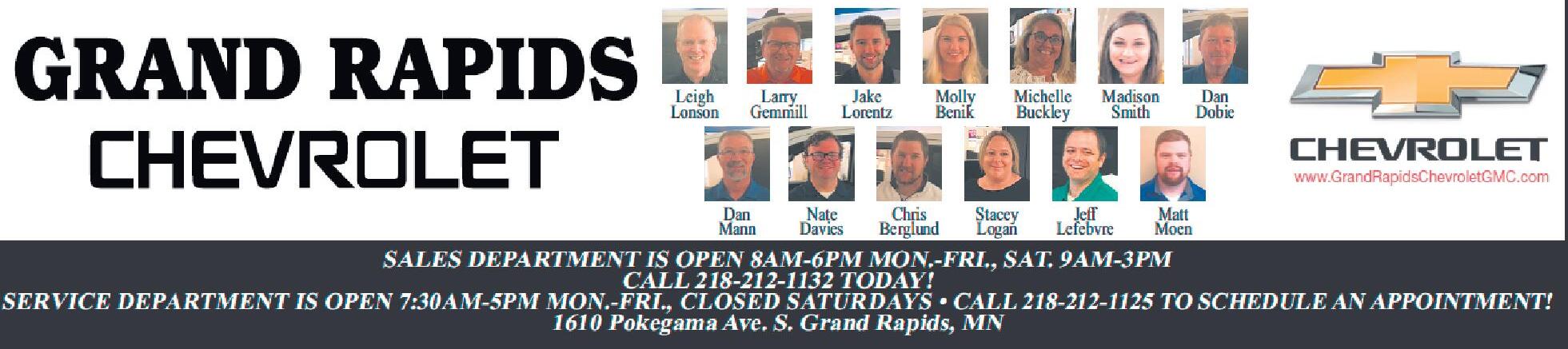 A14 | Saturday, September 16, 2023 | tHe buyline SHopper to contribute newS, StorieS or pHotoS, email: buyline@bemidjipioneer.com *TAX, TITLE AND LICENSE EXTRA. *TAX, TITLE AND LICENSE EXTRA *TAX, TITLE AND LICENSE EXTRA. *TAX, TITLE AND LICENSE EXTRA. OVER 40 CHEVY SILVERADOS IN STOCK! OVER 110 PRE-OWNED VEHICLES! CARS #7472 21 CHEVY MALIBU LT (61K) $18,479 #7514 21 TOYOTA CAROLLA LE (63K) $19,480 #48976T 21 HONDA CIVIC LX (30K) $21,377 #66784A 21 VOLKSWAGON ATLAS (27K) $37,247 #7494 21 CHEVY MALIBU LT (66K) $20,390 #7495 21 CHEVY MALIBU LT (69K) $20,471 #7466 19 KIA FORTE LXS (38K) $16,390 #1319C 19 CHEVY CAMARO 2SS (12K) $41,900 #7504 19 CHEVY CRUZE LS (65K) $16,307 #7517 18 CHEVY IMPALA LT (25K) $23,980 #61694A 17 CHEVY CAMARO SS (26K) $35,980 #42584A 16 CHRYSLER 300 LTD (92K) $16,024 #48361A 15 FORD TAURUS SHO (88K) $18,980 #7459A 15 CHEVY CRUZE LT (77K) $11,480 #48892A 15 CHEVY MALIBU 2LT (40K) $15,480 #7479 13 CHEVY IMPALA LS (89K) $11,310 #1267A 11 CADILLAC CTS LUXURY (52K) $11,480 #43936B 11 CHEVY CRUZE LT (180K) $3,980 VANS #7415 21 CHRYSLER VOYAGER LXI (65K) $24,880 #7518 21 CHRYSLER VOYAGER LXI (62K) $24,980 #7519 21 CHRYSLER VOYAGER LXI (66K) $24,980 #7509 20 DODGE GRAND CARAVAN GT (68K) $22,980 SUVS #7507 23 GMC YUKON XL DENALI (7K) $99,742 #7476 22 CHEVY EQUINOX LT (33K) $24,972 #7414 22 CHEVY TRAVERSE LT (46K) $29,741 #49350T 22 CHEVY TRAVERSE PREMIER (32K) $43,390 #7501 21 CHEVY TRAX LT (63K) $19,741 #7469 21 TOYOTA 4RUNNER SR5 (68K) $34,479 #48173X 21 JEEP CHEROKEE LATITUDE LUXURY (14K) $28,571 #1321 21 CHEVY TRAVERSE LT (47K) $33,980 #7511 21 BUICK ENCORE (62K) $20,864 #1325 21 CHEVY EQUINOX LT (31K) $24,471 #7520 21 CHEVY TRAX LT (53K) $19,980 #1291 20 CADILLAC XT6 LUXURY (37K) $39,479 #47389A 20 JEEP GLADIATOR SPORT (21K) $36,754 #49512U 20 KIA SORENTO LX (82K) $21,980 #7470 20 HYUNDAI TUSCON SE (55K) $19,987 #43609A 20 JEEP GRAND CHEROKEE LAREDO (65K) $26,390 #1311 19 CHEVY EQUINOX LT (51K) $23,537 #40702U 19 CHEVY SUBURBAN LT (107K) $33,471 #43918A 19 CHEVY EQUINOX LT (62K) $21,627 #44730A 19 CHEVY TAHOE LS (58K) $32,980 #7493 19 CHEVY EQUINOX LS (107K) $17,481 #7450A 18 CHEVY TRAX LT (114K) $13,541 #48526T 18 CHEVY TAHOE LS (102K) $29,281 #7451B 18 JEEP COMPASS LATITUDE (44K) $21,292 #7438 17 GMC ACADIA SLT (49K) $24,972 #63285A 17 GMC TERRAIN SLE (127K) $14,480 #7513 17 NISSAN MURANO S (34K) $24,480 #41829A 17 CHEVY EQUINOX LT (81K) $16,980 #65114B 17 JEEP CHEROKEE SPORT (117K) $14,980 #7477 16 CHEVY TRAX LTZ (67K) $14,741 #45282A 15 HYUNDAI SANTA FE SPORT (115K) $12,980 #7505 15 CHEVY EQUINOX LTZ (94K) $15,412 #44234A 14 SUBARU OUTBACK LTD (203K) $8,480 #40955B 14 FORD EDGE SPORT (155K) $10,984 #7520 14 GMC ACADIA DENALI (85K) $17,780 #1333A 14 JEEP CHEROKEE (174K) $8,980 #48763A 13 GMC YUKON DENALI (142K) $13,974 #7475A 13 BUICK LACROSSE LEATHER (90K) $12,980 #40957B 13 FORD EXPLORER LTD (107K) $14,980 #1321B 12 CHEVY TRAVERSE 2LT (179K) $7,980 #69882B 05 CHEVY EQUINOX LT (243K) $1,480 TRUCKS #69708A 23 GMC SIERRA CREW AT4 (500 MILES) $67,954 #7448A 23 FORD F-150 CREW TREMOR (6K) $63,821 #42293A 22 FORD F-350 CREW LARIAT (27K) $65,974 #47349U 22 FORD F-150 CREW (14K) $41,972 #47833T 22 CHEVY SILVERADO CREW RST (16K) $48,971 #60726A 22 CHEVY SILVERADO CREW ZR2 (14K) $64,471 #48854B 22 CHEVY SILVERADO CREW LT (2K) $46,497 #49512A 22 CHEVY COLORADO CREW Z71 (33K) $37,480 #64193A 22 GMC SIERRA CREW AT4 (60K) $59,980 #49259° 22 CHEVY SILVERADO 3500 CREW LT (46K) $55,472 #4082 21 GMC SIERRA 2500 CREW AT4 (22K) $60,447 #45130B 21 CHEVY SILVERADO 3500 CREW LT (43K) $49,741 #40912T 21 GMC SIERRA 2500 CREW AT4 (51K) $56,784 #45298A 21 CHEVY SILVERADO CREW RST (41K) $40,987 #1335 21 GMC SIERRA CREW ELEVATION (13K) $45,980 #66354A 20 CHEVY SILVERADO CREW RST (30K) $41,980 #7465A 20 GMC SIERRA CREW ELEVATION (111K) $32,971 #45135T 20 CHEVY SILVERADO CREW RST (60K) $36,471 #67785A 20 CHEVY SILVERADO CREW LTZ (52K) $41,972 #41630B 20 TOYOTA TUNDRA CREW PLATINUM (32K) $48,177 #492161T 19 FORD F-150 CREW XLT ( 59K) $33,980 #64803A 19 CHEVY SILVERADO CREW RST (130K) $27,954 #45082J 19 GMC SIERRA CREW DENALI (30K) $58,980 #61235A 19 FORD F-150 CREW XLT (47K) $34,980 #44715A 19 CHEVY SILVERADO CREW LT (69K) $34,682 #46169A 19 FORD F-150 CREW XLT (43K) $37,471 #40441I 18 FORD F-350 SD LARIAT (140K) $42,741 #40900T 18 CHEVY SILVERADO CREW LT 2 (34K) $36,980 #46664A 18 CHEVY SILVERADO CREW LT2 (85K) $27,254 #49435T 18 GMC SIERRA CREW DENALI (70K) $39,471 #61205B 18 CHEVY SILVERADO CREW HI-COUNTRY (54K) $40,671 #45835T 18 CHEVY SILVERADO CREW LTZ (159K) $26,471 #7512 17 CHEVY COLORADO CREW Z71 (143K) $20,480 #47993A 16 CHEVY SILVERADO 2500 DBL CAB (100K) $27,480 #46315A 16 CHEVY SILVERADO DBL CAB LT (134K) $22,980 #41566T 16 CHEVY SILVERADO CREW LT2 (102K) $26,390 #48011T 16 FORF F-150 SUPERCAB XLT (99K) $23,480 #1308A 16 GMC SIERRA CREW SLE (101K) $26,980 #40749A 15 CHEVY SILVERADO DBL CAB LT (109K) $21,987 #44066A 15 DODGE RAM CREW BIG HORN (84K) $25,480 #47839A 14 GMC SIERRA DBL CAB SLE (168K) $9,900 #65959B 13 GMC SIERRA CREW SLT (140K) $17,980 #44929 12 DODGE RAM 2500 ST (147K) $14,471 #1253A 11 DODGE RAM 2500 CREW LARAMIE (152K) $17,390 #44316B 11 FORD RANGER SUPER CAB XLT (105K) $14,980 #63251B 10 FORD F-150 CREW PLATINUM (153K) $10,980 #42614A 09 CHEVY SILVERADO CREW LT (116K) $14,980 #43303A 09 FORD F-150 CREW FX4 (124K) $11,980 #65002B 08 FORD F-150 CREW XLT (168K) $8,480 #63305U 05 FORD F-250 CREW XLT (185K) $6,480 MSRP ............. $32,490 MSRP .............. $27,145 MSRP ............. $47,935 SALE PRICE ..................................................... $31,490* SALE PRICE .................................................... $25,980* SALE PRICE ...................................................... $51,592* SALE PRICE .................................................... $46,935* 2024 CHE V Y EQ UINOX LT, AWD 2023 CHEV Y TRAILBL AZER LT WITH CONVENIENCE PKG., DRIVER CONFIDENCE PKG. 2024 CHEV Y BL AZER AWD, LE ATHER, 20” GLOSS BL ACK WHEELS, SOUND & TECHNOLOGY PKG. #