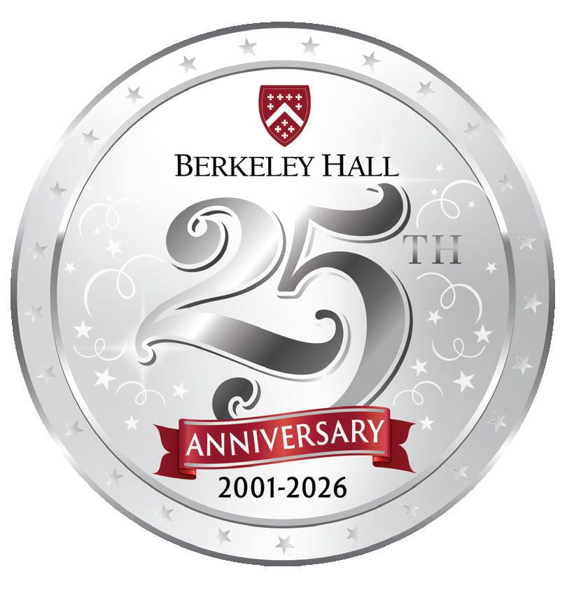 The excitement doesn’t stop there, as we lead up to Berkeley Hall’s Silver 25th Anniversary Celebration in October of 2026! We’ll be sharing some of our Club history along with member stories in each Berkeley Experience issue as we approach this remarkable milestone. We begin with one of our earliest club members, Marsha Levin with a Q&A on page 7.