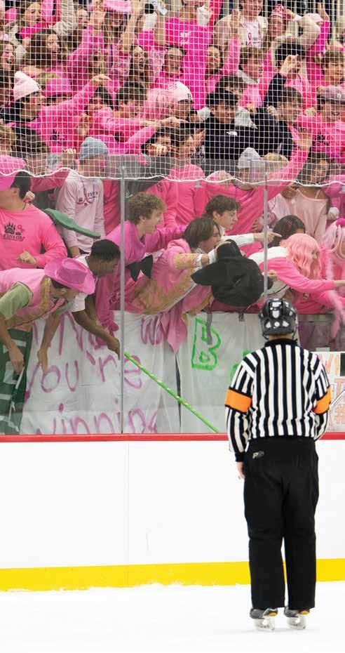 3. The Bears delivered a 4–3 win over Taft to reclaim the D’Arco Cup in the 16th annual “Pink Out” game. The game honors the memory of Lucille D’Arco, a supporter of both schools and mother of Brad D’Arco, former Berkshire hockey coach and Taft alum, with proceeds from the event benefiting breast cancer research. Photo courtesy Robert Falcetti/Taft