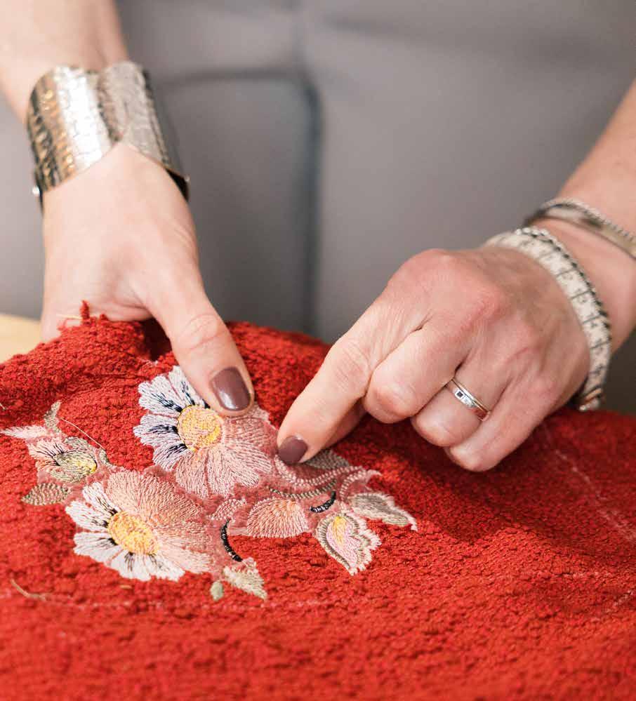 “Bordei um desenho floral no meu casaco vermelho. Ficou perfeito.”