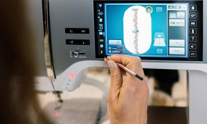 Crie os seus próprios pontos e desenhos de quilting de linha contínua, desenhando as suas ideias diretamente no ecrã tátil. Com um toque, o seu desenho será transformado num padrão de pontos. Uma vez criado o ponto ou o desenho, cosa-o ou abra-o no bordado e borde-o ou altere os pontos existentes conforme desejar. Guarde as suas próprias criações de pontos para expandir a sua biblioteca de pontos.