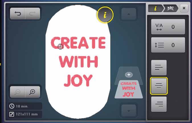 Alinhe e distribua facilmente os bordados na horizontal e na vertical. Use a escrita multilinhas e o alinhamento de texto para personalizar o posicionamento do seu texto.