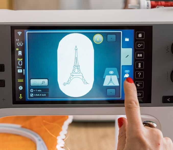 Integre facilmente os seus próprios motivos de quilting via USB (transfira gratuitamente o ficheiro BQM da Torre Eiffel em bernina.com/7PROseries)