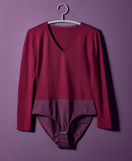 Der obere Teil des Bodys besteht aus weichem Feinstrick, der angenehm auf der Haut liegt und optisch wie ein eingesteckter, dünner Pullover wirkt. Das Höschen aus Jersey sorgt für Tragekomfort und eine optimale Passform – bequem und feminin zugleich.