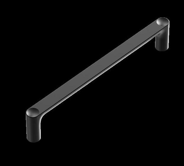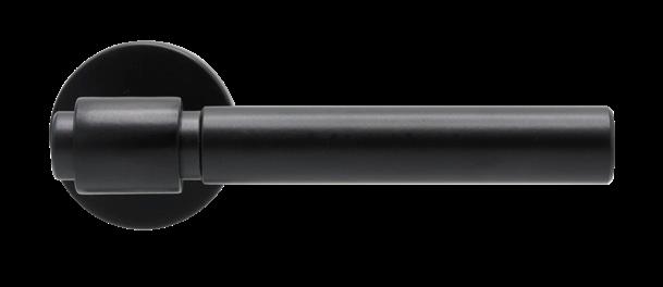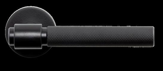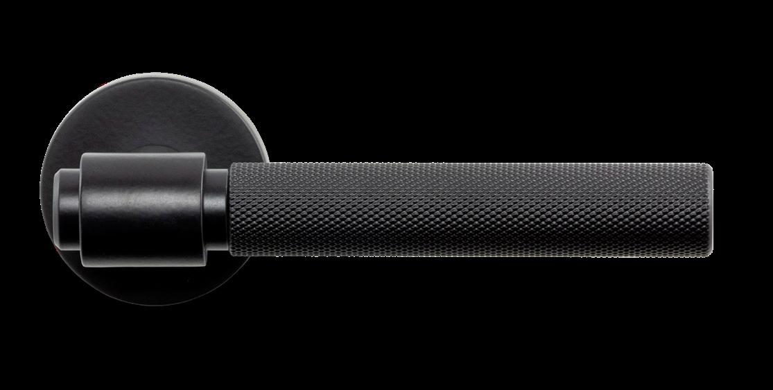 Helix 200 is a spring-loaded door handle with a knurled surface – a tactile and visual detail that evokes sophisticated industrial style. The matte black finish enhances its presence, creating a striking contrast on both light and dark doors.