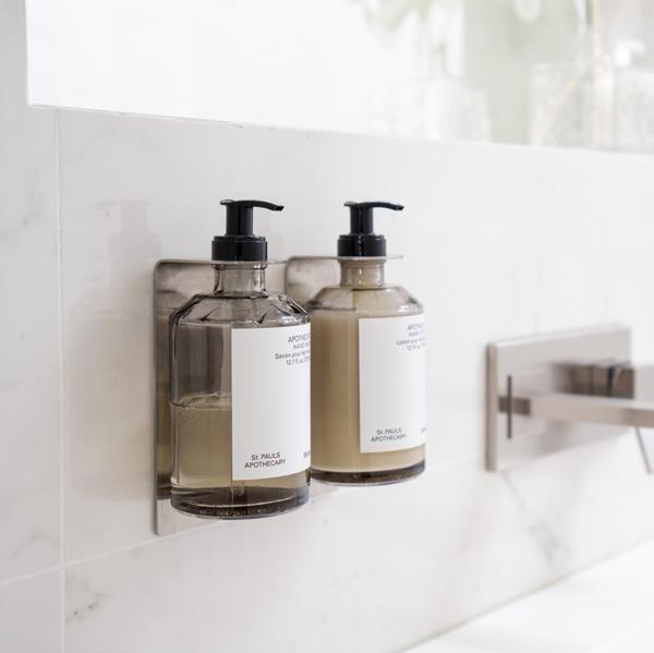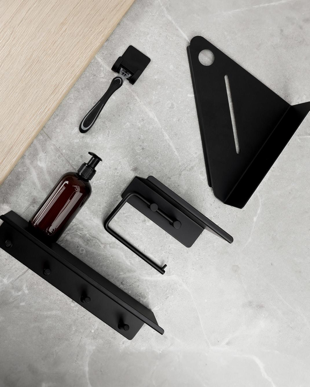 Our wall-mounted soap dispenser further elevates the bathroom’s style. Perfect for freeing the sink from soap bottles or keeping shampoo off the shower floor – a tasteful detail that instantly brings order and harmony. Easily installed without tools thanks to its self-adhesive backing. Explore our full range of matte black bathroom accessories as well.
