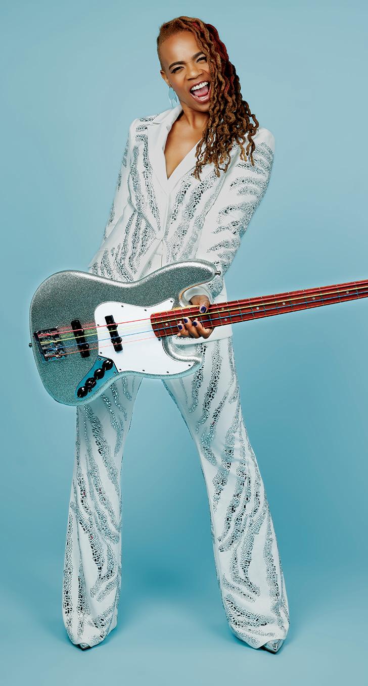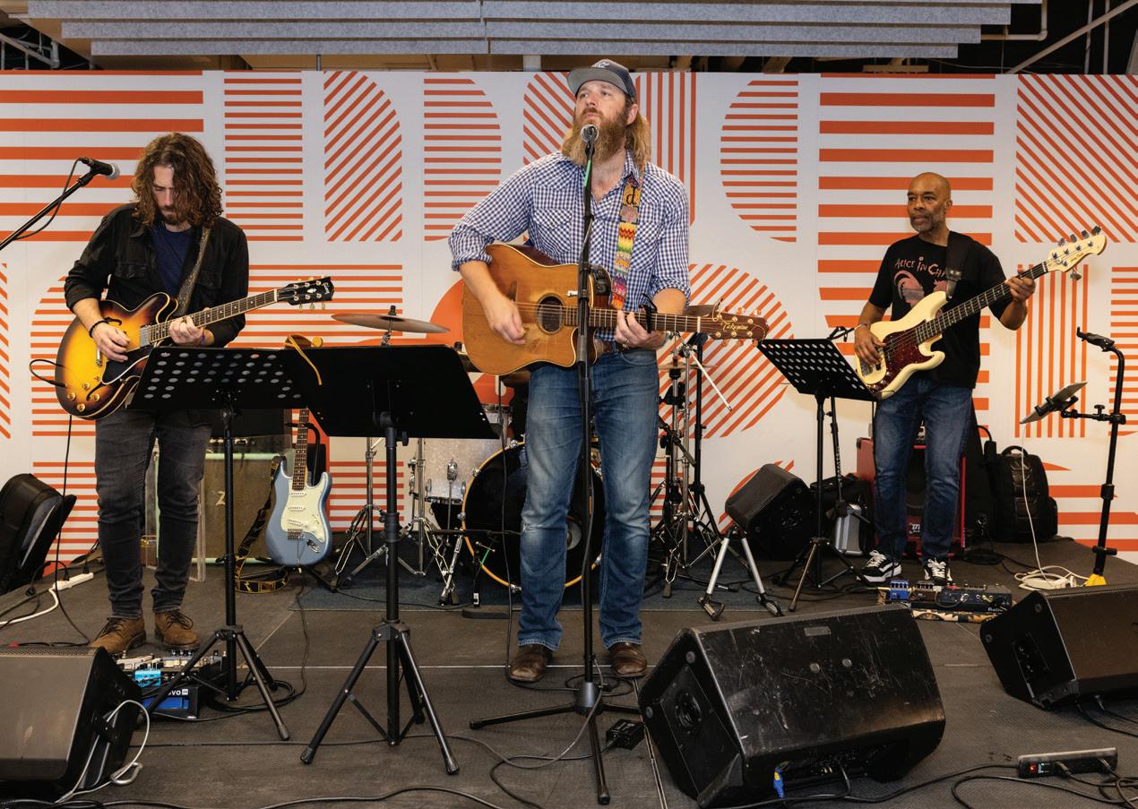 for loved ones to sign. For the entertainment, the bride and groom “wanted all that energy” of a live band, James says. So after the pair’s first dance to “Until I Found You” by Stephen Sanchez, upbeat hits including “Everytime We Touch” by Cascada and “Any Way You Want It” by Journey lured guests to the dance floor in between sessions at the prop-filled photo station. A sparkler-lit exit saw the newlyweds off to their after-party at