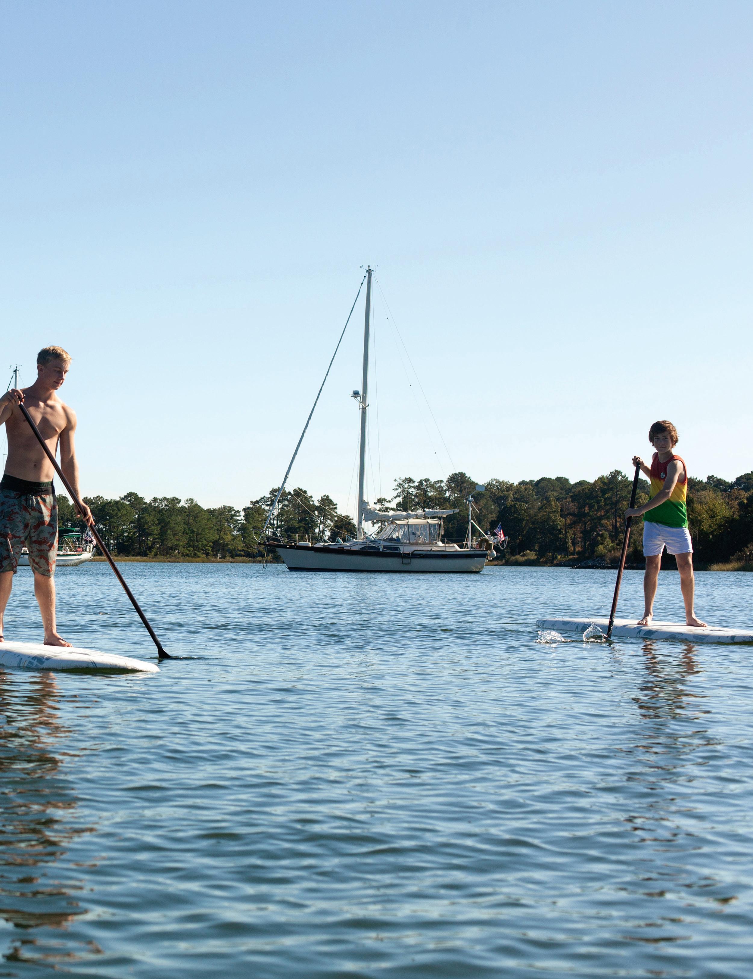 Urbanna’s Kayak Trail ( virginiasriver realm.com/things-to-do/urbanna-kayaktrail/#explore ) has 26 stops including beaches and former ferry landings. Take a three-hour daytime or sunset sail on a catamaran with Nauti Cat (sailnauticat.com) or rent a paddleboard or kayak from Paddle On’s walk-up kiosks (facebook.com/p/ paddle-on-100083411285614), and follow the suggested launch points.