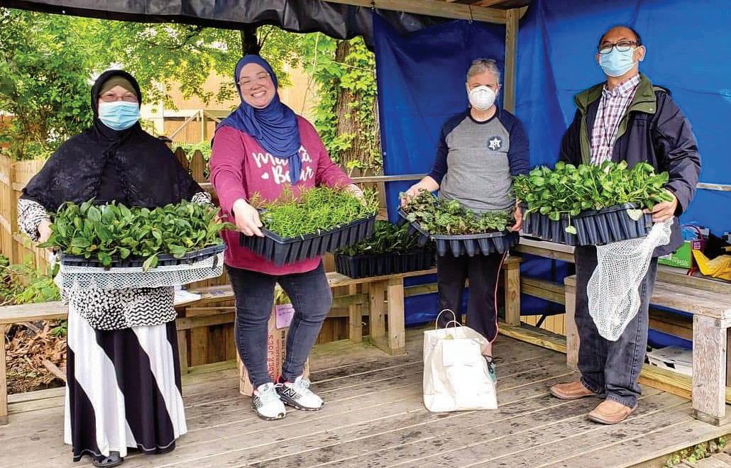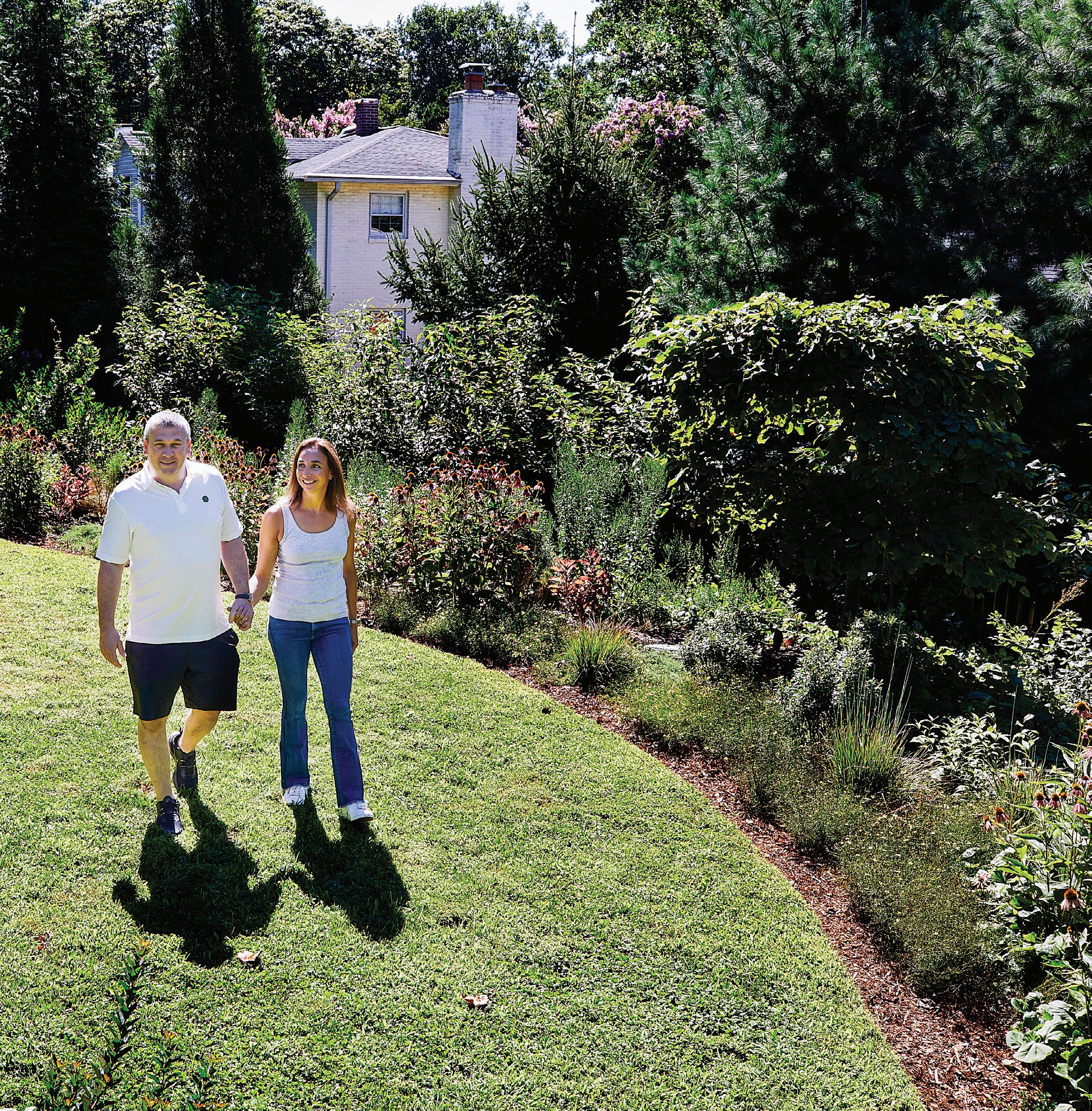 Nick (left) and Cindy Onder in their Bethesda backyard next to their rain garden
