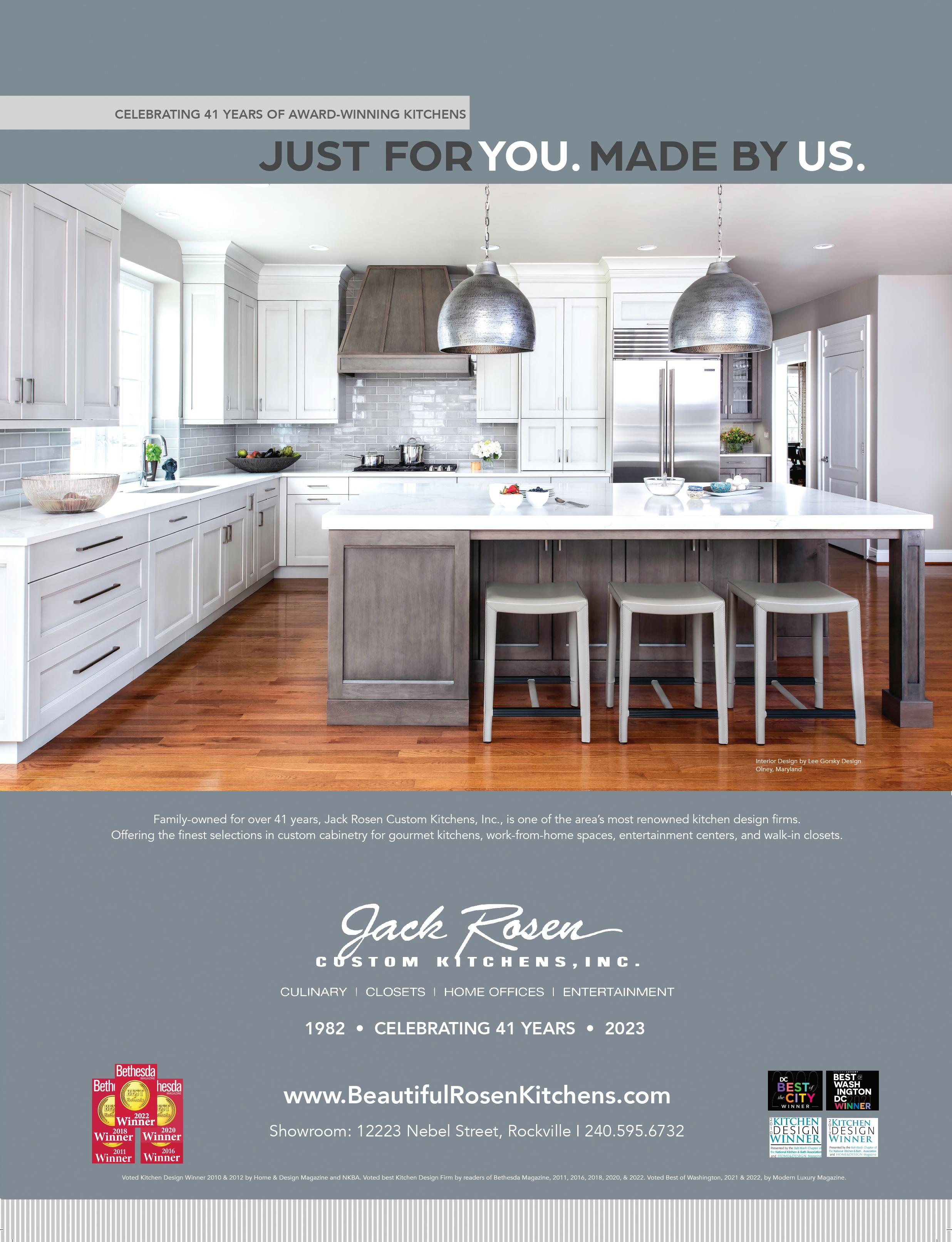 SINCE 1955, WE’VE BEEN FIRST CHOICE FOR THE BEST KITCHEN IN THE NEIGHBORHOOD. COME VISIT OUR SHOWROOMS. EVERYTHING YOU NEED FOR THE ROOM YOU’LL LOVE THE MOST IS HERE IN ONE PLACE. AND, YOU’LL UNDERSTAND WHY SO MANY PEOPLE SAY, “NOTHING ADDS MORE VALUE TO YOUR HOME.” B ETHESDA S HOWROOM 8203 W ISCONSIN A VE . 240-223-0875 M C L EAN S HOWROOM 1401 C HAIN B RIDGE R D . 703-734-6102 NNAPOLIS S HOWROOM 2335B F OREST D R . 410-761-5700 You AlwAYs Know A stuArt Kitchen. STUARTKITCHENS COM