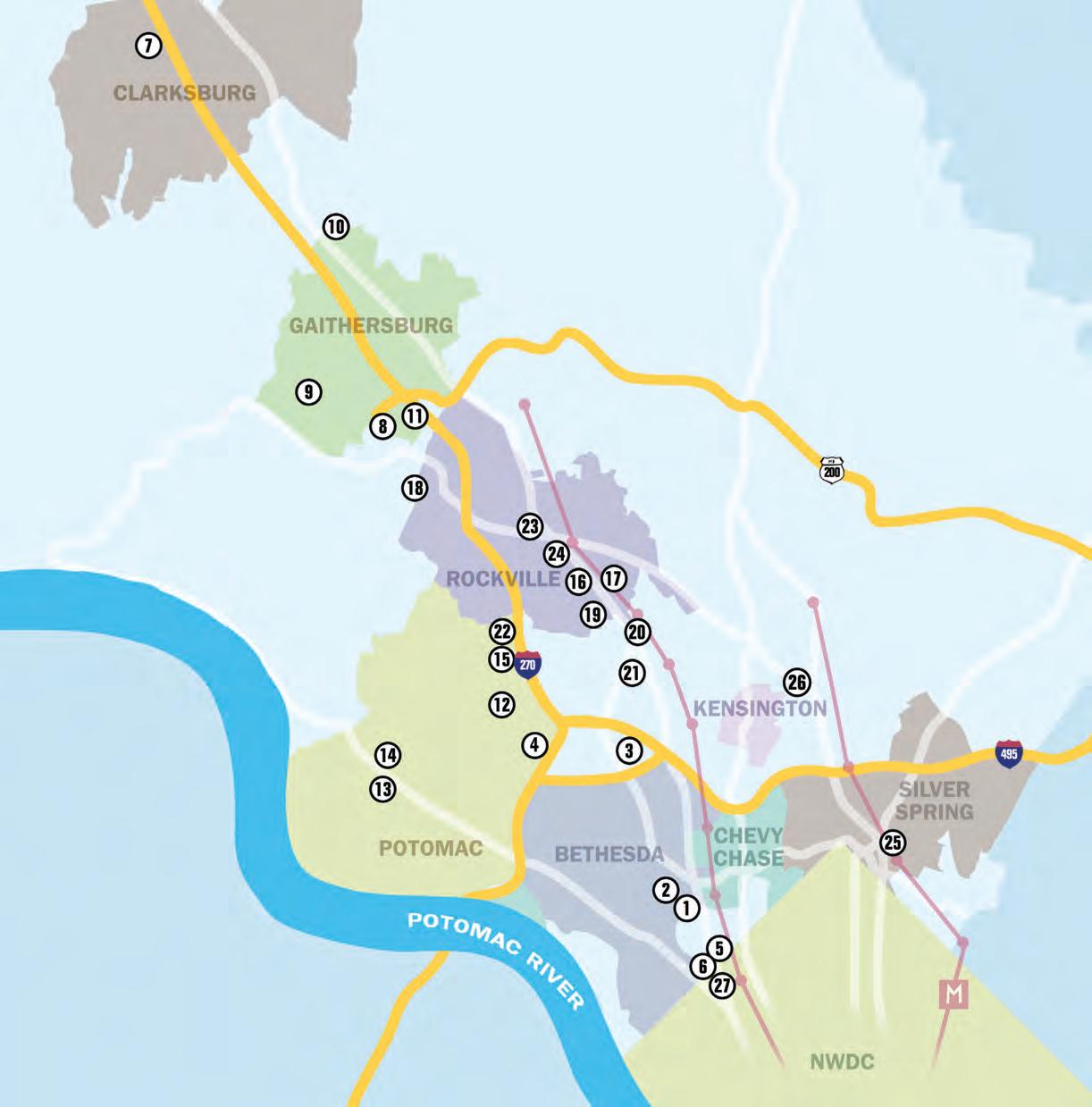 BETHESDAMAGAZINE.COM | NEWCOMERS GUIDE 2022 -2023 5 84 BETHESDA 86 CHEVY CHASE 88 GAITHERSBURG/ NORTH POTOMAC 90 KENSINGTON & GARRETT PARK 92 POTOMAC 94 ROCKVILLE/ NORTH BETHESDA 96 SILVER SPRING 98 CABIN JOHN & GLEN ECHO 83 OUR TOWNS Montgomery County is home to a wide variety of communities. Here’s information on the demographics of 12 in the Bethesda area. PHOTO BY SKIP BROWN; PHOTO COURTESY OF FRESH BAGUETTE SPECIAL