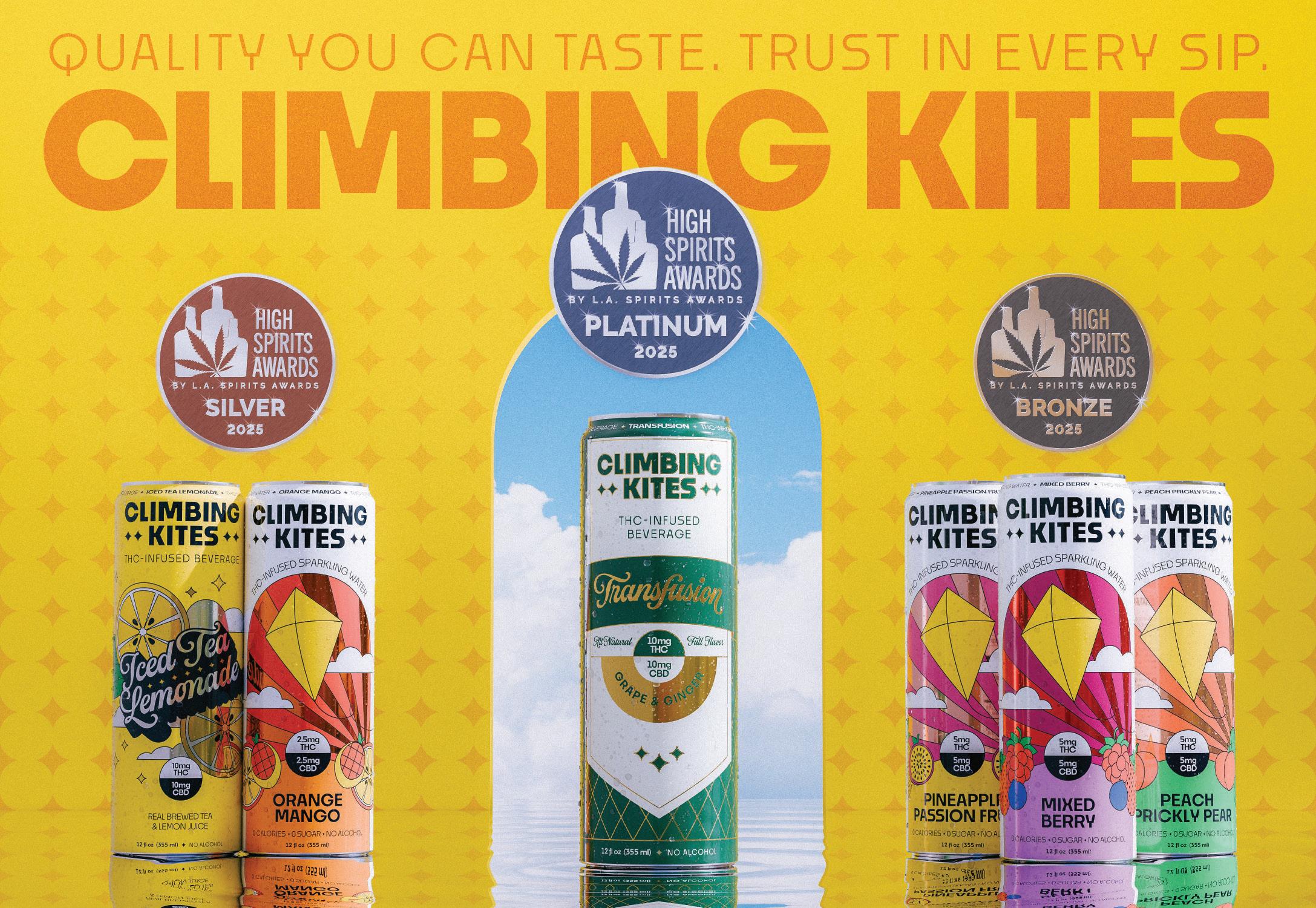 Elevate each social occasion by bringing Climbing Kites along as your trusted beverage companion. 100% Naturally Derived THC & CBD in every can. Quality you can taste, trust in every sip.