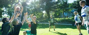 Recreational ; more fun and games/playful oriented ; strong social dynamic, can have a spontaneous element to it. Ex. Neighbourhood park "pick-up" games like frisbee or tag and the city's swimming area.