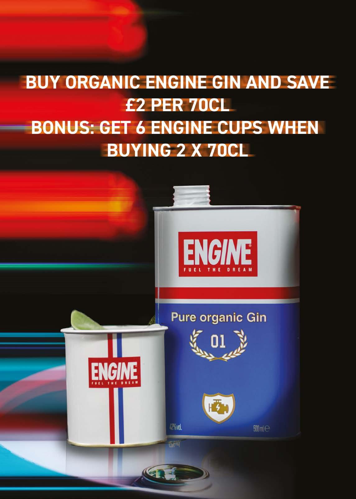 *T&Cs: Discount applies when purchasing 70cl tins of Engine Gin during the promotional period. The POS promotion applies when buying 2 x 70cl tins of Engine Gin simultaneously. Limited POS quantities available. Whilst stocks last