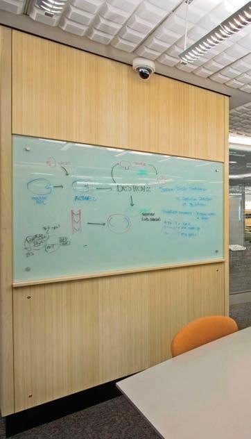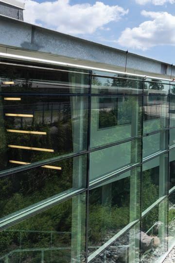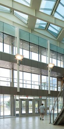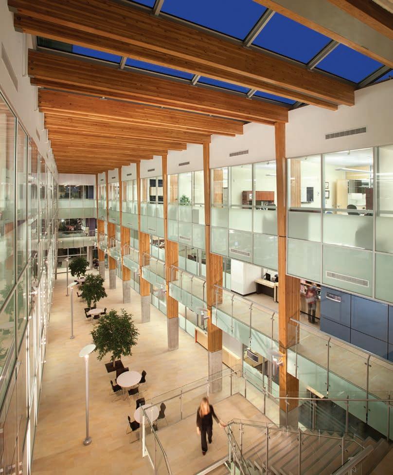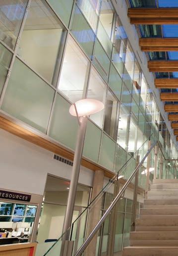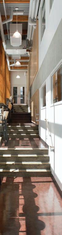 The west side of the Engineering and Management building contains three stories of laboratories. Engineering lab spaces contain skylights for natural day lighting and reduce the overall load on artificial lighting. The use of natural ventilation and day lighting has been employed throughout, with as many labs, offices and classrooms as possible having both operable and vision windows.