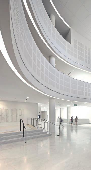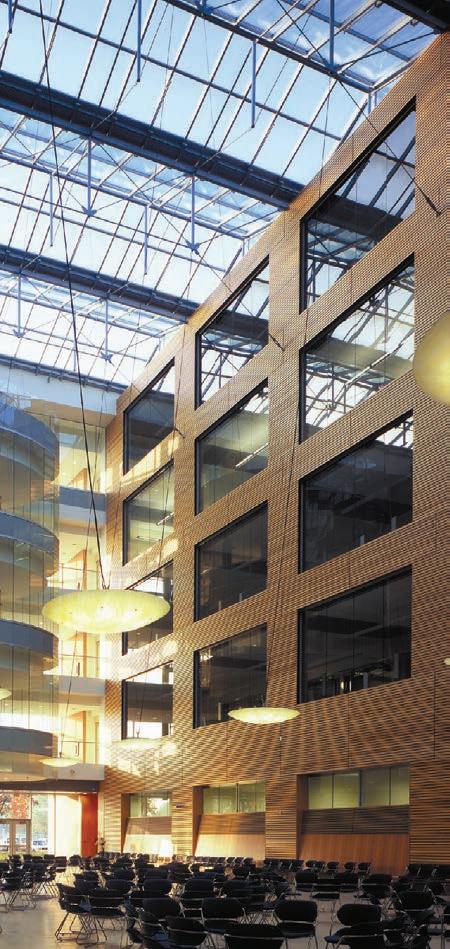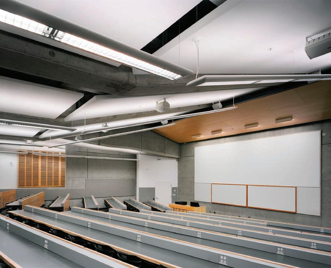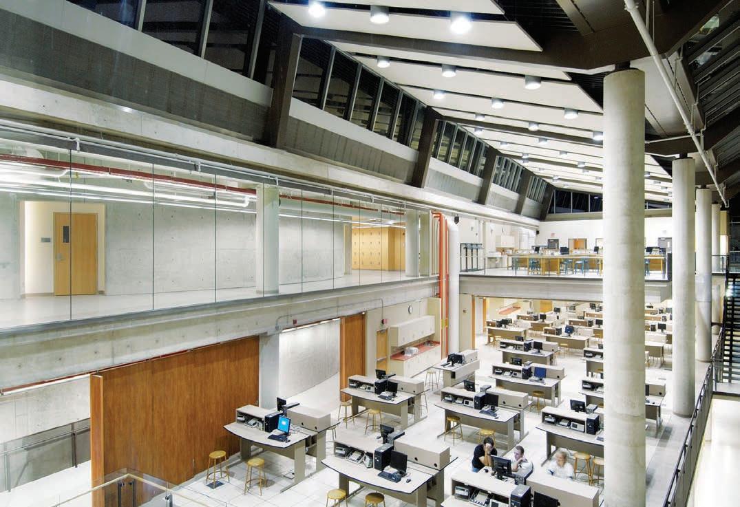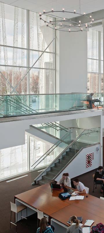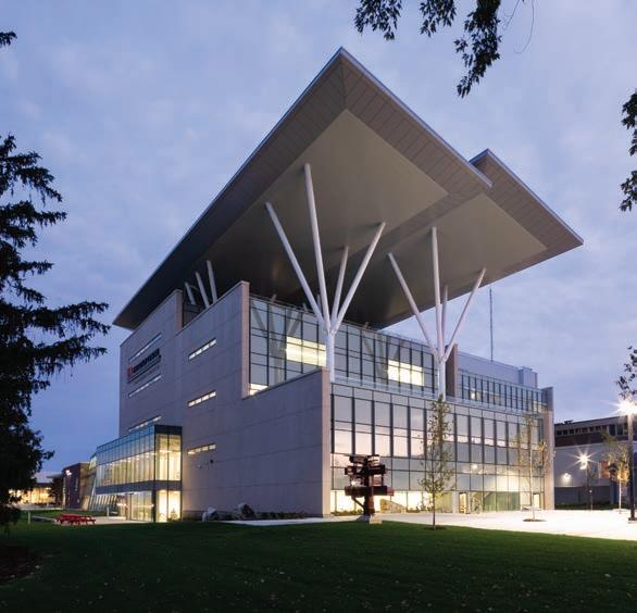 The Engineering, Management and Education Building contains both the Faculty of Applied Sciences (Engineering) and the Faculty of Management. The two buildings are connected by a central atrium and organized around shared amenities, including common areas, classrooms, lecture theatres and a collegium. Within each faculty area there are customized faculty and administration offices, a variety of teaching and research labs as well as library facilities. The modularized building form is designed to easily adapt to future expansion.