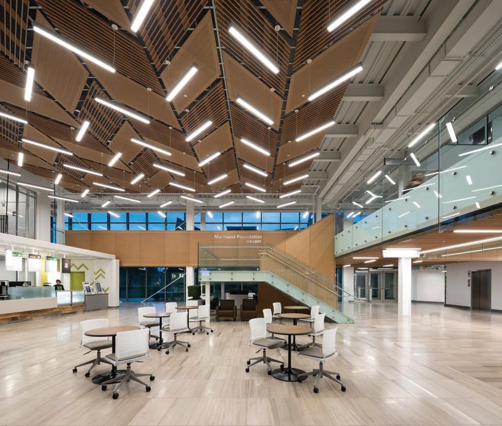 The winner of a National Post Design Exchange Award, this facility is home to the College’s world-renowned animation training centre; as well as the New Media Arts, New Media Journalism and Telephony programs. It contains 20 multimedia classrooms supporting a full range of technology activity, a 120-seat lecture hall with state-of-the-art presentation capabilities, television production space, broadcasting studio, sound stage, interactive immersive theatre, and motion capture lab. Including high-performance sustainable design features, the Centre’s relaxed modernist design reflects and encourages the creative innovation of its users.