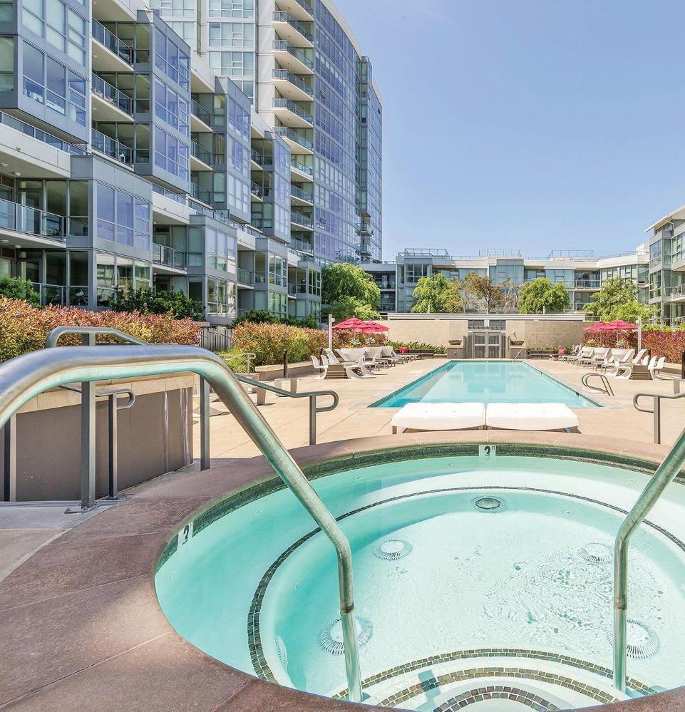 Premier Mission Bay luxury condo at Madrone by Bosa. Stylish and sleek ultra-modern 5th floor unit with beautiful resortstyle courtyard views. Grand floor-to-ceiling windows overlook the landscaped amenity level and flood the home with natural light. 2 private balconies create indoor outdoor living flow. Open concept floor plan with gorgeous new hardwood floors, top-ofthe-line appliances and in-unit laundry. Built-in closet organizers, parking and additional storage included. Steps to Spark Social SF, Starbucks, Mission Bay Commons Park and the waterfront. World-class employers, medical centers, entertainment and activities abound. Near the San Francisco Giants baseball stadium and Chase Arena. Amenity suite includes heated swimming pool, hot tub, gym, steam room, dry sauna, club lounge, community room, movie theater, BBQs, meeting room, billiards, terraceaand 24/7 attended lobbies.