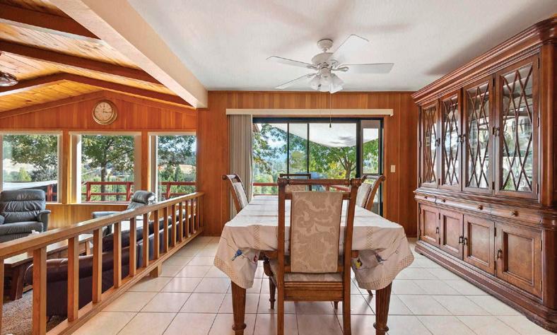 Privacy and Views in Gold Springs Estates. As you enter the home and head towards the living room there are 5 large windows bringing the outdoors in. The wood paneling and ceilings give the home a mid-century modern feel and yet the construction is newer than that style. The propane fireplace and new carpet give the room a nice warmth. The living room is open to the dining room which has a sliding glass door to the back deck and is open to the kitchen. The master bedroom has new carpet and an attached bathroom with a tub/shower combo. Off the foyer is a sweet, screened in patio with 2 walls of “windows”. The attached garage and shed gives plenty of space for storage. Outside the deck is the perfect place to BBQ. Just below the deck an outdoor living area is set up.