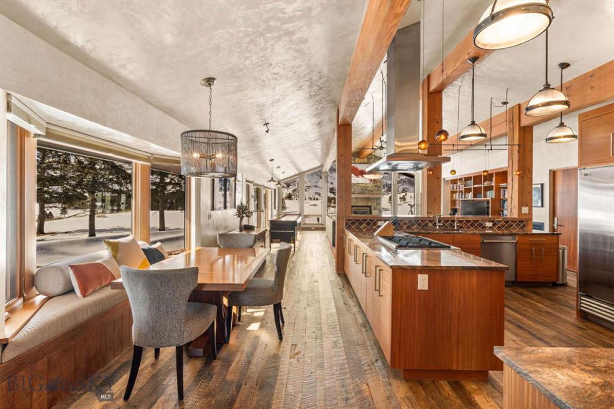 Discover your mountain sanctuary in this stunning ski-in/skiout retreat near Big Sky Resort. This beautiful home seamlessly combines elegance and functionality, all framed by unmatched views of Lone Peak and Fan Mountain. The thoughtfully designed main-level layout features the primary bedroom, open-concept living room, dining area, and chef’s kitchen, all positioned to maximize the breathtaking views through expansive floorto-ceiling windows. A bonus room above the garage offers flexibility as a guest suite, additional rec room, or private retreat. The lower level includes four spacious bedrooms, a cozy family room, and convenient access to the outdoors. The expansive outdoor living spaces, including a large deck, are perfect for al fresco dining or simply relaxing while taking in the serene surroundings. Designed for versatility, this home provides year-