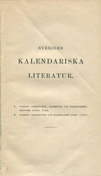 Rubricerad ‘Bibliografi samt litteratur-, konstoch kulturhistoria’ omfattar avdelningen de 434 första numren i katalogen, det vill säga en dryg fjärdedel av innehållet. Storleken säger onekligen något om den ambitiöse och kunskapssökande samlaren Hierta, för vilken referenslitteraturen syns ha varit en oundgänglig vägvisare in i den äldre bokvärlden. En mer samlande och modern beteckning för det material som i katalogen betecknas som bibliografi är väl annars bokväsen, då här inte enbart förtecknas bibliografier och bokkataloger utan även boktryckeri- och bokbandhistoria, exlibrislitteratur med mera. Som framgår av rubriken rymmer avdelningen även andra typer av referensböcker och till det som nämns där kan exempelvis läggas ett och annat biografiskt arbete. Den stora merparten av skrifterna är författade på svenska, men här finns även gott om tyska, franska, danska och engelska titlar, liksom enstaka