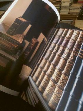 som min hustru vidste betød noget helt særligt for mig: blandt andet en af de første bøger, jeg – eller rettere: min far – købte, da jeg var seks år, en lille bog fra 1660, såmænd. Det lykkedes ikke alene min hustru at finde de ‘rigtige’ bøger, men også at tage dem ud af reolen, få dem fotograferet – og sat eller lagt på plads, så jeg ikke anede uråd. Og linsen fangede ikke kun ikke alene titlerne, emnerne, indbindingerne – som er en væsentlig del af min samlerpassion; bogbind – men bogens æstetik, simpelthen. Og så det støv, der uundgåeligt lægger sig på stakke og borde.