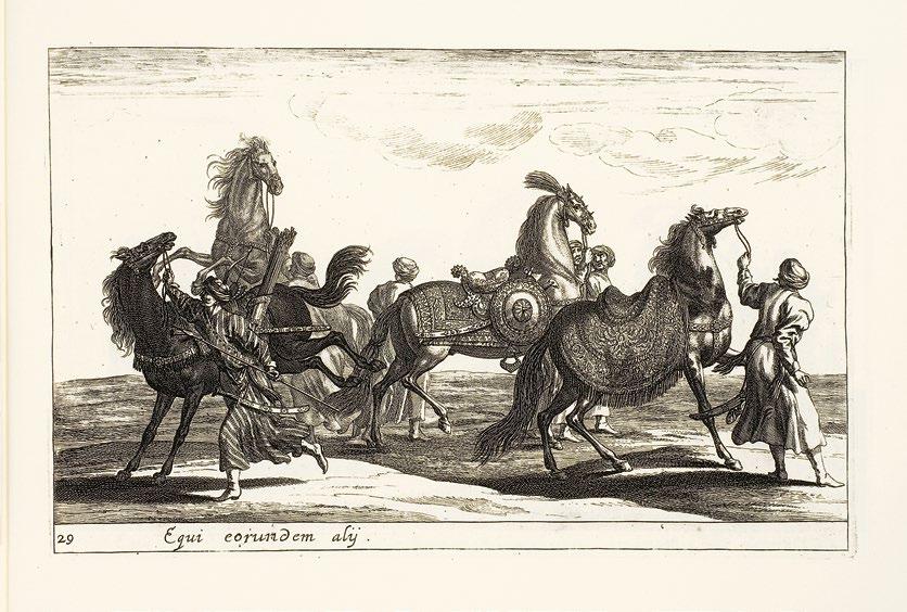 titta i på grund av tryckets klarhet och skärpa. Det innehåller den latinska och tyska texten med förklaringar till planscherna, titelplansch, ceremonin i rikssalen, illuminationerna på Stortorget, Gustav Adolfs torg och Kungsholmsbron, kavalkadsviten med 55 planscher, slutligen en interiör av beridarehuset med kungen på banan, fyrverkeriet, det avslutande gästabudet. Sist en plansch över en låtsad sjöstrid på Riddarfjärden 1673, som inte ingår i men ofta är sammanbunden med Certamen equestre. Kavalkadsviten i synnerhet är särdeles underhållande, med deltagarna i sina praktfulla dräkter, alltifrån den stränge anföraren Gustaf Kurck till den ungdomlige kungen i sin romerska praktrustning av förgylld mässing, som finns bevarad i sin helhet i Livrustkammaren. Mest underhållande är kanske hästarna själva, i synnerhet handhästarna, som ingalunda travar i någon sedesam parad utan kastar och kränger och stegrar sig å