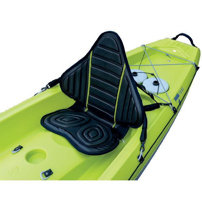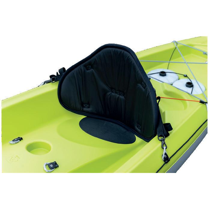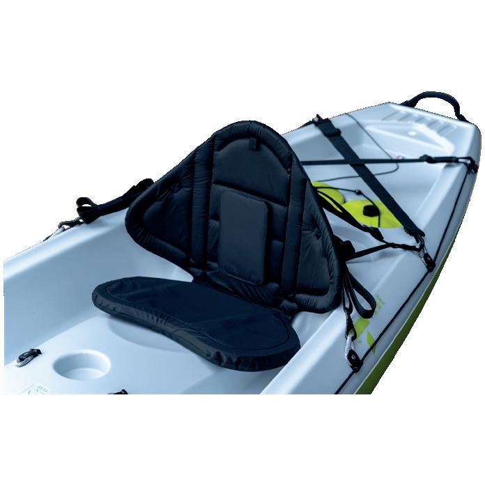 Thick foam inside wrapped with a resistant mesh for comfort and excellent support during paddling. Comes with webbings and a snap hook for storage.