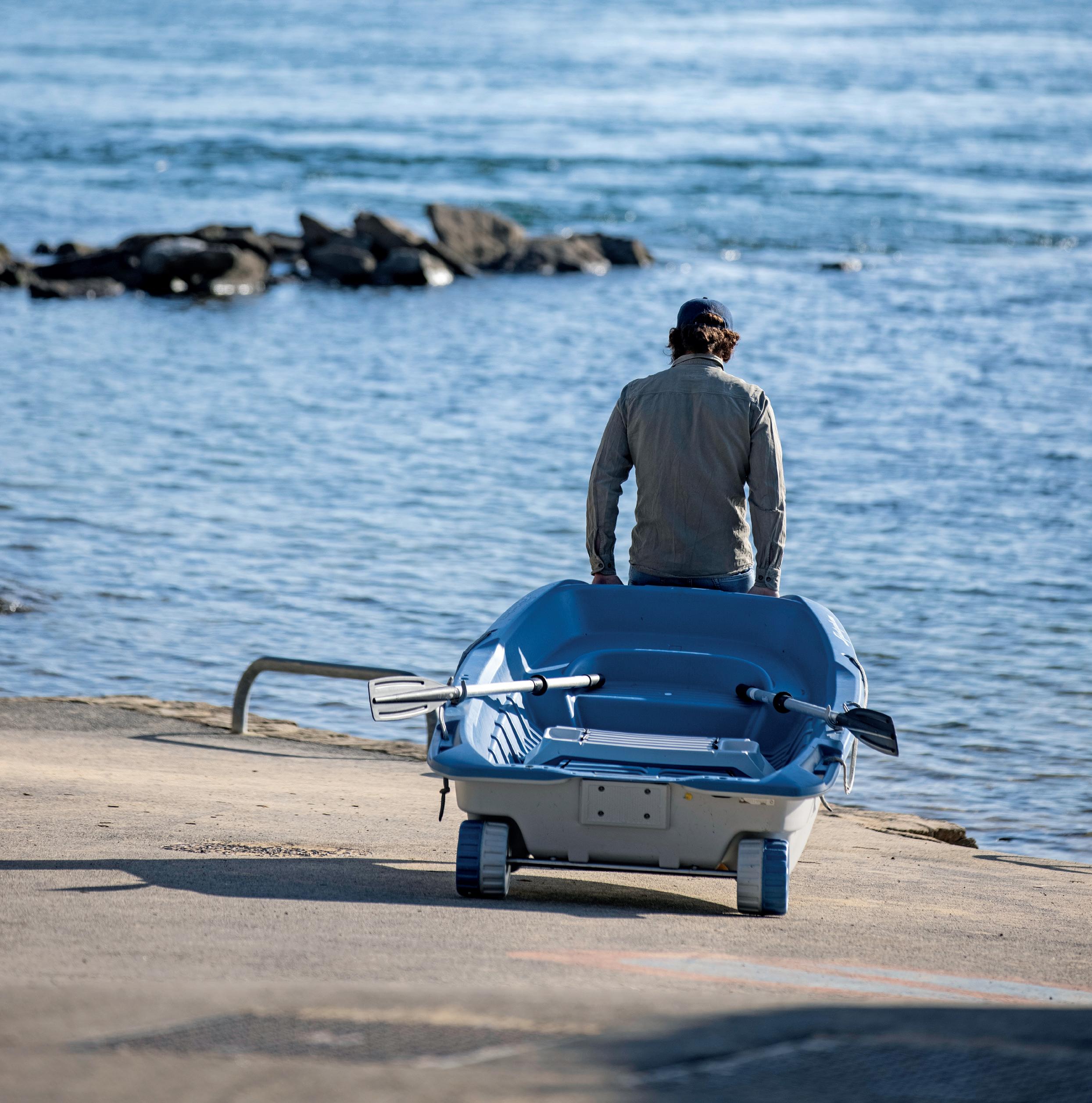 Rowing, sculling or motoring, in port or at anchor, the Sportyak 245 is an ideal way to get to your boat. On vacation it becomes a perfect rowboat that the whole family to enjoy and is ideal for kids to experience the joy of ‘messing about in boats’. The 245 is lightweight for it’s size and features a super stable hull design for added comfort and ease of use. The innovative wheel transport systems makes transport a breeze. Quality accessories include an adjustable oar bench, two oarlock location options, multiple carrying handles, a self-draining plug to be able to leave your tender at anchor and deck lines for added safety.