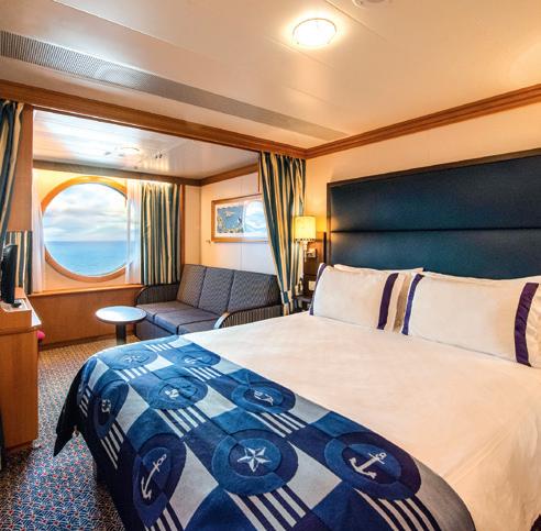 comfortable for an attractive price. They offer more space than you’d find on comparable ships, sleeping up to four Guests with a living area and a full bathroom with a tub. there’s also a living area and a split bathroom with a tub. Larger groups will like the Deluxe Family Oceanview Stateroom with Verandah, which sleeps up to five Guests.