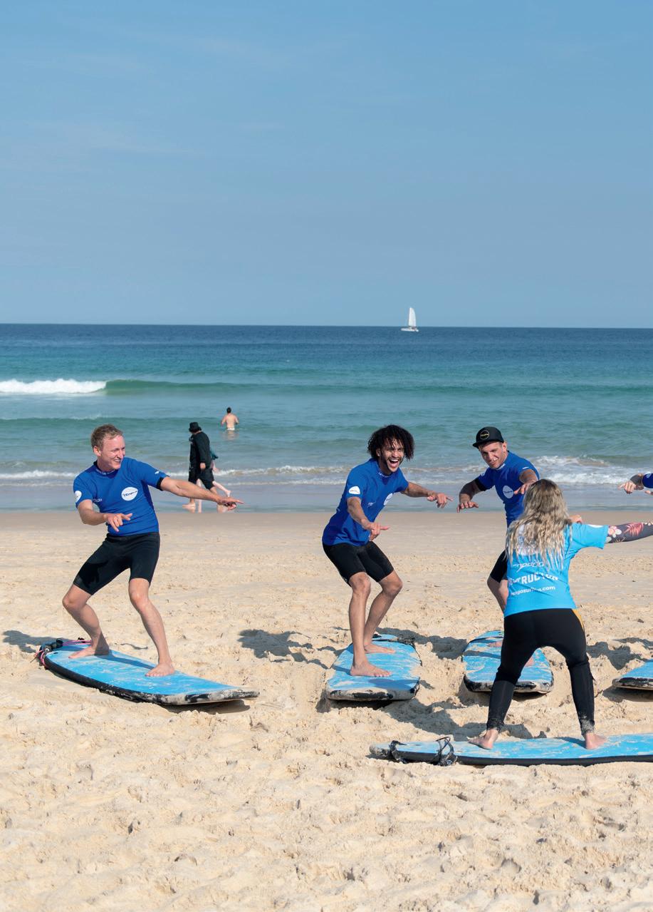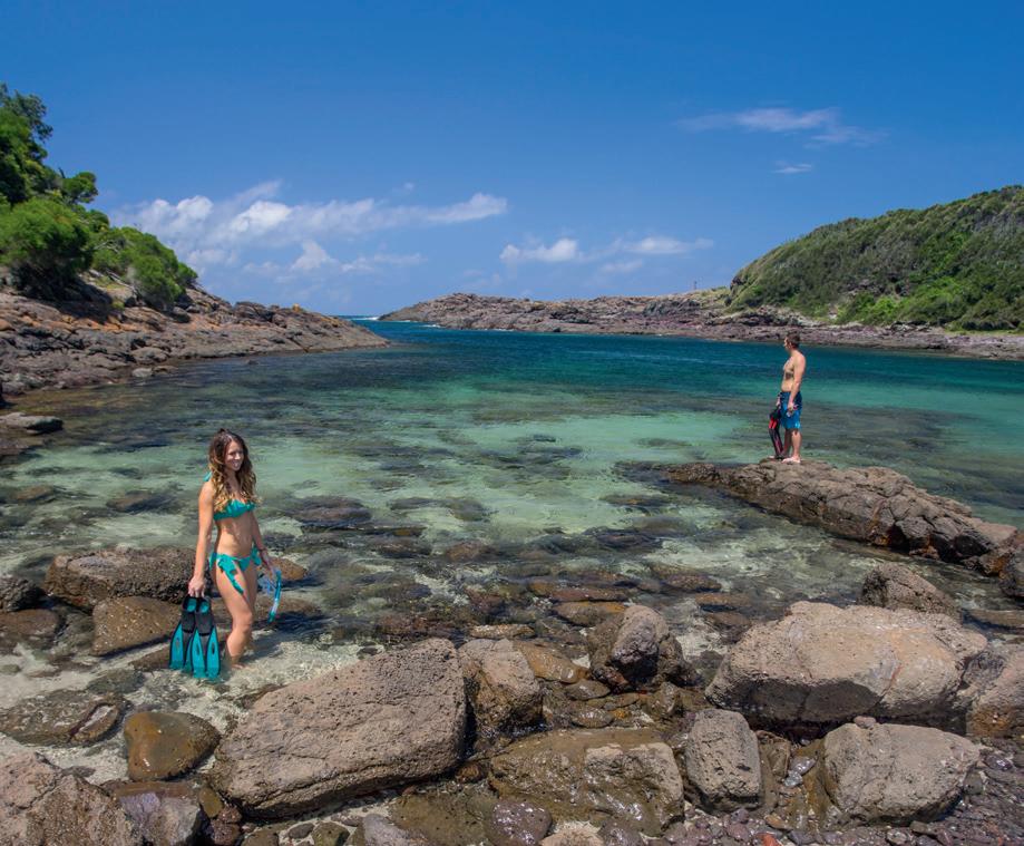 a-half hours outside Sydney, you’ll find a more intimate, untouched landscape that’s defined by its pristine nature walks and dependable marinewildlife sightings. Take a whale-watching cruise early in the morning or skip the sights and lift your adrenaline by sandboarding the monumental sand dunes at Stockton Beach. The Little Nel, just a skip from Nelson Bay Foreshore Reserve, is a must for lunch. Pick between Bannisters and The Anchorage for top-tier accommodation, if you want to spend a night or two.