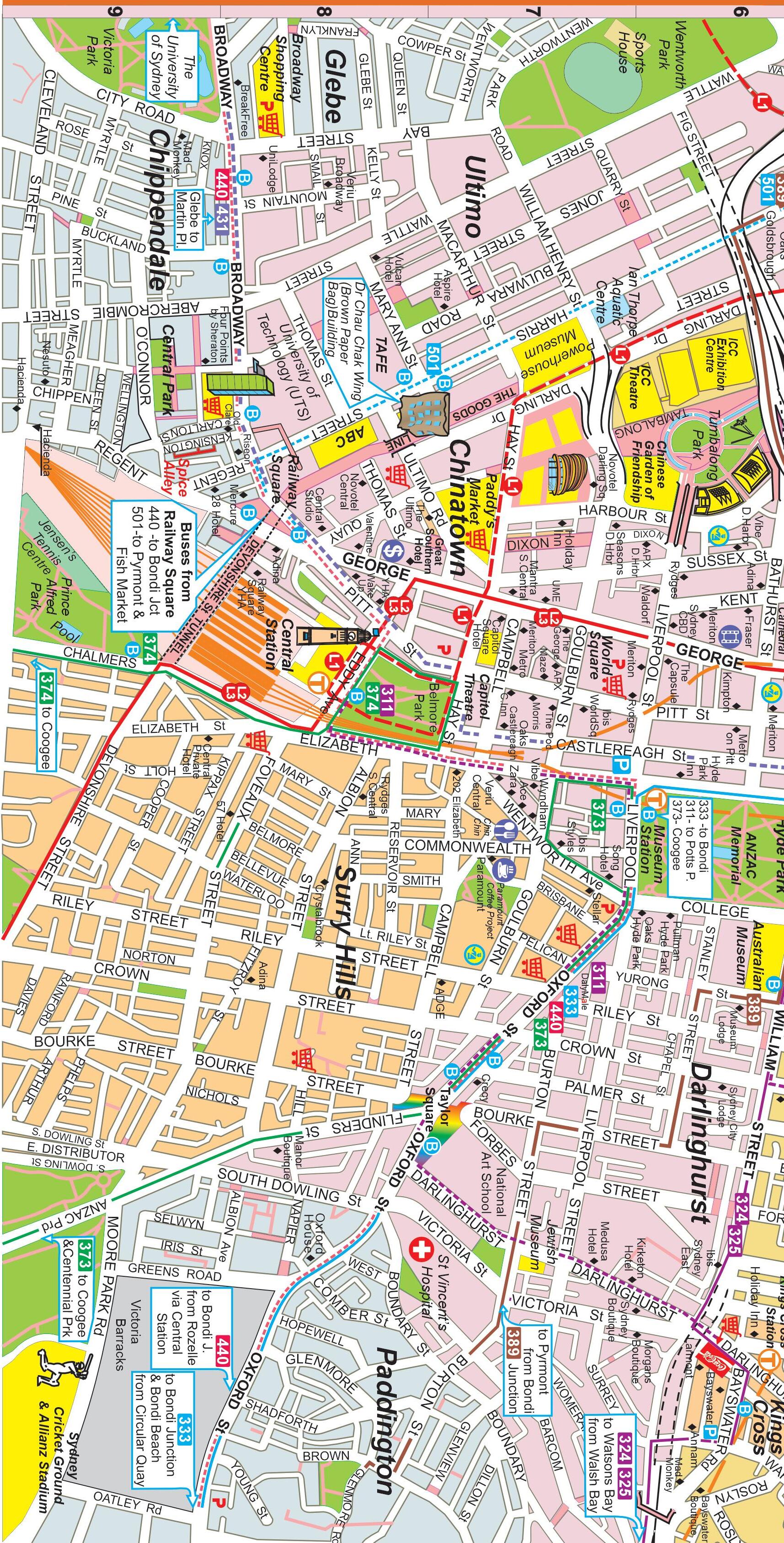 from Circular Quay to Bondi Beach, 373 from Museum Station to Coogee, 440 from Museum Station to Paddington and the B1 from Wynyard to the Northern Beaches.