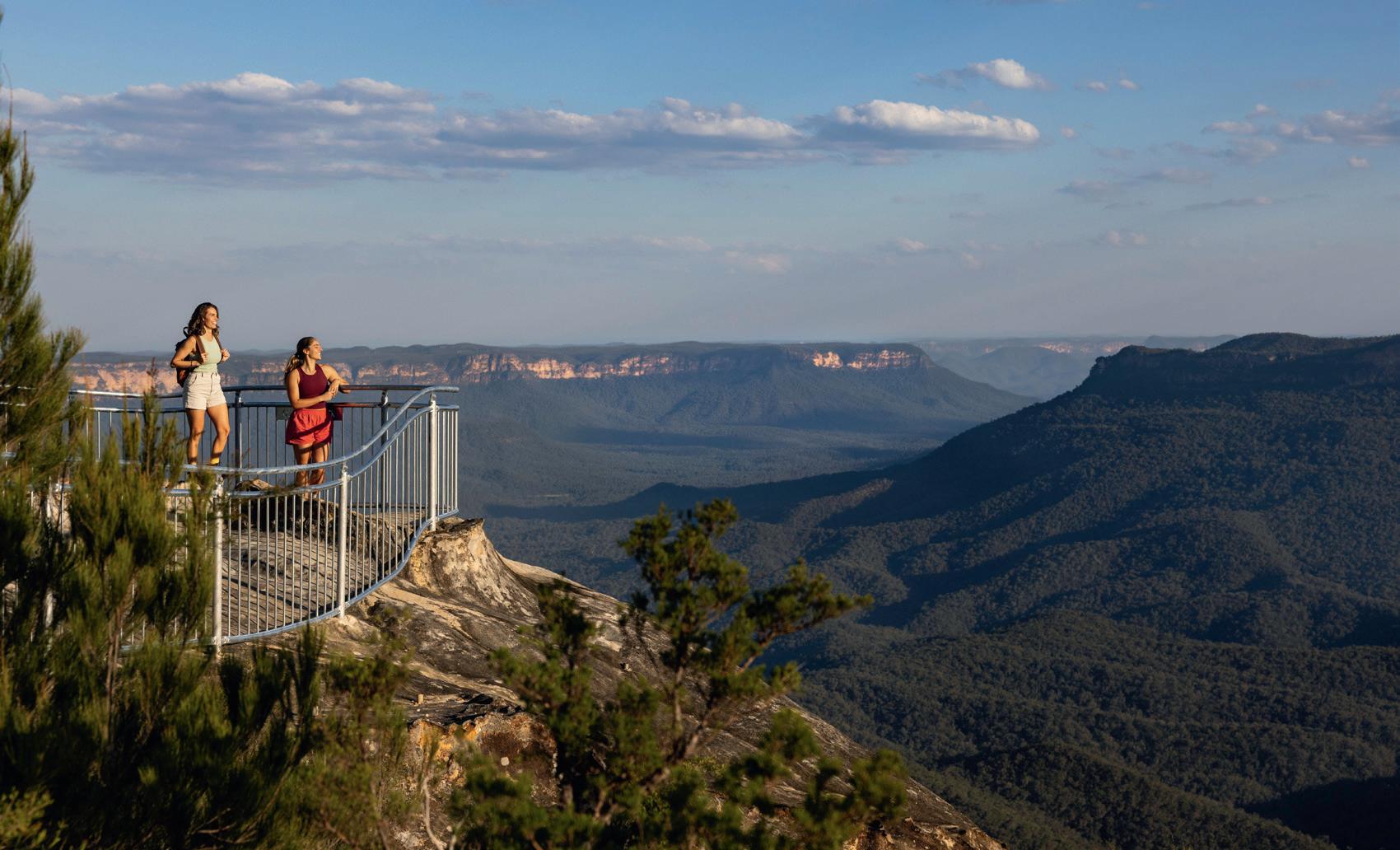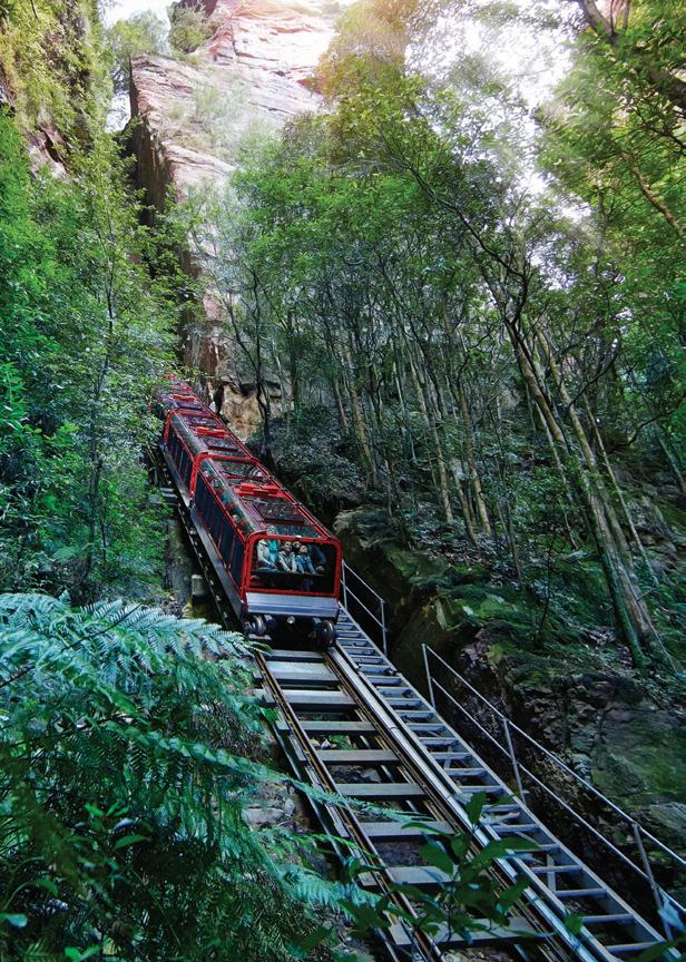 Though Western Sydney technically ends at the foothills of the Blue Mountains, this iconic World Heritage wilderness has long been the city’s playground. Follow hiking trails through spectacular mountain landscapes, discover hidden waterfalls, tackle challenging mountainbike trails and marvel at breathtaking lookouts. Or get a di erent perspective from the cable car and thrilling incline railway at Scenic World. The mountains are dotted with charming villages, such as Katoomba, Leura and Blackheath, known for their antique stores, tea houses and cosy pubs.