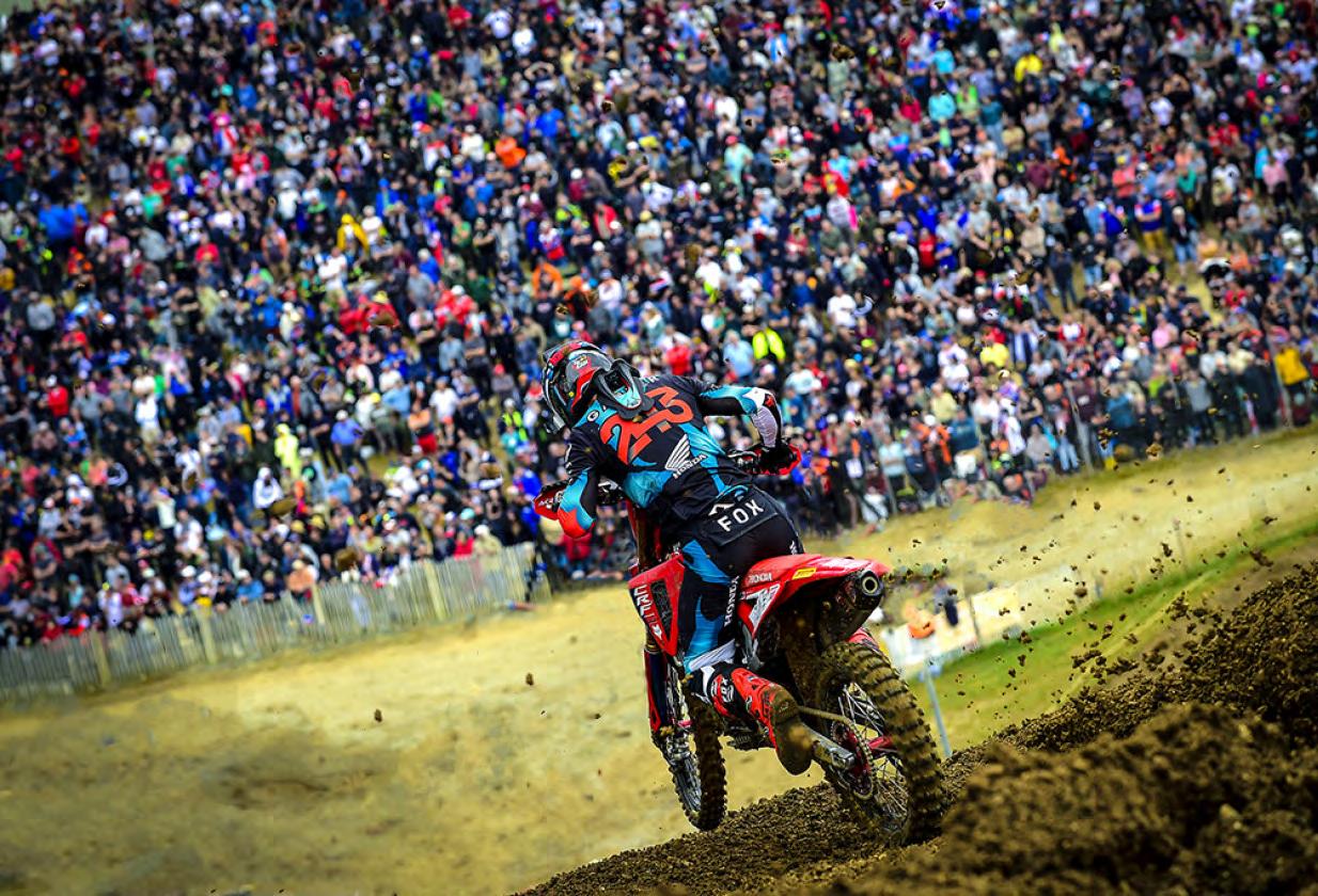 του οι Romain Febvre (Kawasaki) και Jeffrey Herlings (KTM) πίεζαν και σύντομα ο τελευταίος πέρασε και τους δύο προπορευόμενους για να αναλάβει αυτός να οδηγήσει τη δράση. Η συνέχεια είχε μια τιτανομαχία παγκόσμιων πρωταθλητών, με τους
