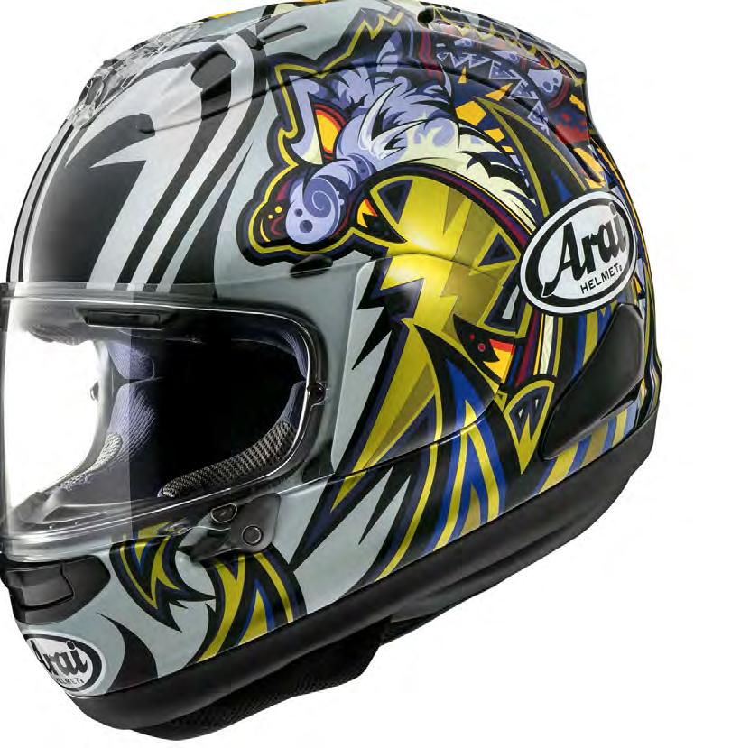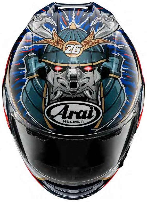 The RX-7 has always been the benchmark of Arai’s motorcycle racing R&D at the very highest level. Handmade in Japan by a threegeneration family company of riders, it is Arai’s state-of-the-art helmet. When it comes to proficiency in head protection, Arai has the goal of making a helmet superior to all others and continues to make our helmets this way today. We have seen this confirmed in many of our rider crashes over several decades, and we pursue gains in protection even if just a little.