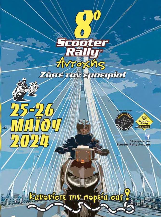 CITY NEWS Ετοιμαστείτε για το 8ο Scooter Rally Αντοχής Όπως μας πληροφορεί το σχετικό Δελτίο Τύπου, το Scooter Rally Αντοχής συνεχίζει για ακόμη μια χρονιά να προσφέρει οδηγική απόλαυση! Για την ακρίβεια αναφέρει τα εξής: Η διοργάνωση αυτή, δημιουργήθηκε με στόχο: • να ενώσει Μοτοσυκλετιστικές παρέες • να ενώσει Μοτοσυκλετιστικά club και forum • να ενώσει Ανθρώπους με διαφορετική οδηγική εμπειρία • να ενώσει Αναβάτες διαφορετικών δικύκλων τόσο σε φιλοσοφία όσο και σε κυβικά Το
