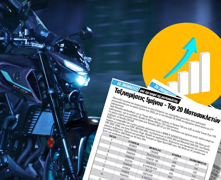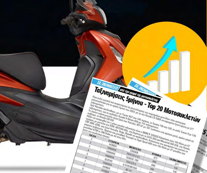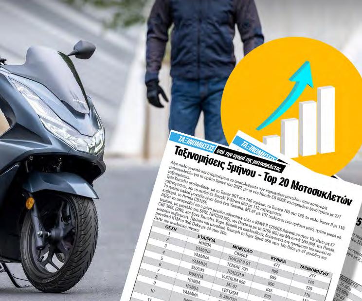 στα ουράνια η αγορά δικύκλων, με τρομερή άνοδο τον Απρίλιο και μεγάλο ποσοστό αύξησης σε βάθος 4μήνου. Η αγορά μοτοσυκλέτας και δικύκλων γενικότερα, στην χώρα μας, διανύουν μια ιστορική περίοδον αύξησης των επιδόσεων και της δημοτικότητας τους, έχοντας αφήσει πίσω τις πληγές τόσο της δεκαετούς κρίσης όσο και της πανδημίας. Εντυπωσιάζει η άνοδος ταξινομήσεων κατά τον Απρίλιο, καθώς καταγράφηκαν 8.342 ταξινομήσεις, μια αύξηση κατά 60,86% σε σχέση με τον περσινό αντίστοιχο μήνα. Σε βάθος 4μήνου, οι ταξινομήσεις ανήλθαν στις 21.917, μια αύξηση κατά 25,7% σε σχέση με το 4μηνο του 2023, δημιουργώντας προσδοκίες για ακόμα περισσότερες πωλήσεις από τις 65.896 που σημείωσε το περασμένο έτος -μένοντας στην ιστορία ως η καλύτερη χρονιά της τελευταίας 14ετίας. Σε μια πιο αναλυτική ματιά στις ταξινομήσεις δικύκλων στην Ελλάδα, όσον αφορά τον Απρίλιο ταξινομήθηκαν 1.734 μοτοσυκλέτες, με την Honda να κατατάσσεται στην πρώτη θέση της λίστας (283 μοτοσυκλέτες, μερίδιο 16,32%) και τις Yamaha και Voge να την ακολουθούν. Νέα καταστήματα, αλλαγές σε υπάρχοντα αλλά και βελτίωση δυκτίου συνολικά, έχουν φέρει κορυφαίες επιλογές κοντά στο αγοραστικό κοινό, και αυτό είναι κάτι που φαίνεται και στα νούμερα. Ώρα για επένδυση στην αγορά εξοπλισμού για τον αναβάτη, αφού τις ζεστές μέρες ντυνόμαστε με ανάλογα ρούχα. Διάτρητα μπουφάν, παντελόνια, γάντια αλλά και μποτάκια, έχουν την τιμητική τους. Και φυσικά, πάντα κράνος, για να απολαμβάνουμε τις βόλτες μας με ασφάλεια. Τάκης Μανιάτης EDITORIAL
