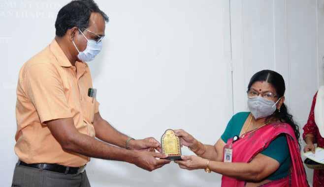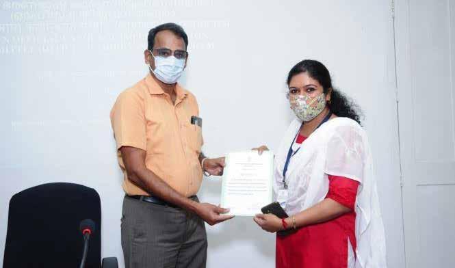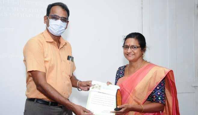 ने भयाग सलए। नियाकयास के सलए रु.8000/- कया अंशदयान ददयया गयया। बैिकों में कयायया्यलययाध्क् एवं सहयायक तनदेशक(िया.भया.)उपस्थिि िहि हैँ। 10. कयायया्यलय द्यािया वष्य 2020-21 में पुिस्याि प्रयाप्त तवभयागीय कम्यचयारियोंको त्द्भयाषी रूप में बनवयाए गए प्रमयाण-परि ददए गए। 11. कयायया्यलय में लगयाए गए श्वेि-पट्ट में हिेक ददन एक-एक वयाक्यांश को त्द्भयाषी रूप में (दहदी-अंग्ेज़ी में) सलख िहे थे। अब “िोज़ एक दहदी शब्द सीखें” योजनया को औि आकष्यक बनयाने के सलए खिीदे गये इलक्ट्रॉतनक मोतनटि कया िीक ििह उपयोग कि िहे हैं। 12. कयायया्यलय व स्टदडयों में महि व्तक्तयों के अनमोल उधििणों के दहदी बोड्य प्रदसशि किके दहदी कयायया्यन्यन में औि बढयावया ददयया गयया है। 13. कयायया्यलय में ई-ऑफीस प्रणयाली शुरु कि दी गई है औि इस प्रणयाली के मयाध्म से दहदी कया अयधकिम कयाय किने कया प्रययास त्कयया जया िहया है। 14. कयायया्यलय परिसि में थियातपि नयागरिक चयाट्यि त्द्भयाषी रूप में हैं। 15. अब परियाचयाि की प्रतिशििया लक्ष्य(55%) से आगे हैं। 16. तिमयाही, छमयाही एवं वयातषक रिपोटयों को समय पि भेज ददए जयाि हैं। तिमयाही रिपोटयों को ऑन-लयाइन भेज ददए जयाि हैं। वयातषक कयाय्यक्रम के मुियातबक वयातषक कयाय्ययोजनया महयातनदेशयालय को भेज ददयया। 17. दहदी िोस्टि (कयायया्यलय, सी.बी.एस. एवं सी.सी डस्लियु.) कया िखिखयाव अद्िन हैं। 18. स्वच्छ भयािि अयभययान के सयाथ अन् सभी प्रतिज्या भी त्द्भयाषी रूप में ही सलए जयाि हैं। 19. मन की बयाि कयाय्यक्रम पि आधयारिि, ई-मेल द्यािया एवं लेटि-बॉक् में प्रयाप्त मलययालम परिों को दहदी में अनूददि किके रिॉडकयात्स्टग हयाउस के कयाय्यक्रम तनष्पयादक को ई-मेल के ज़रिए भेज देि हैं। 20. कयायया्यलयीन कयामों में उपयोगी रटप्पण से संबंयधि त्द्भयाषी वयाक्यांशों को कम्यचयारियों के बीच में तविरिि त्कए गए। श्ी ियाजू वगगीस, उप महया तनदेशक(ई) एवं कयायया्यलययाध्क्, के मयाग्यदश्यन एवं देखिेख से ही, इन सयाि कयामों के सफलियापूव्यक कयायया्यन्यन संपन्न हुआ हैं। क्षेत्रीर पासपोटया कारायालर क्ेरिीय पयासपोट्य कयायया्यलय, तिरुवनंिपुिम द्यािया 20202021 के दौियान ियाजभयाषया दहदी के कयायया्यन्यन हे ि तवयभन्न कयाय्यक्रमों कया आयोजन त्कयया गयया। वैश्श्वक महयामयािी कोिोनया से लड़ि हुए दहदी पखवयाड़या 2020 कया आयोजन ददनयांक 14.09.2020 से 28.09.2020 के बीच पयािंपरिक ििीके के इिि िकनीक कया सहयािया लेकि ऑनलयाइन मयाध्म से संचयासलि त्कयया गयया। देशभतक्त गीि, कतविया पयाि, भयाषण, तनबंध लेखन, वयाचन, रटप्पण एवं मसौदया लेखन जैसे प्रतियोतगियाओं में कयायया्यलय के अयधकयारियों/कम्यचयारियों ने अपनी भयागीदयािी सुतनश्चिि की। कोतवड़ 19 प्रोटोकॉल के प्रतिबंधों के कयािण पयािं