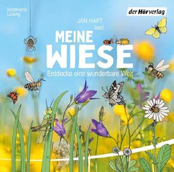 Wie weit von deinem Wohnort liegt die nächste Blumenwie se? Privilegierte haben sie vielleicht sogar gleich im Garten hinterm Haus, wie der Biologe, Naturfilmemacher und Au tor Jan Haft. Die allermeisten müssen bei dieser Frage aber vermutlich ein wenig nachdenken, wo sie die nächstgelege ne Fläche finden könnten, die dem Namen Wiese gerecht wird. In seinem neuen Hörbuch für Kinder im Grundschul alter macht Jan Haft jedenfalls Lust, sie aufzusuchen und zu entdecken, was dort so kreucht, fleucht und wächst. Sein Buch für Erwachsene »Die Wiese. Lockruf in eine geheim nisvolle Welt« ist bereits 2020 erschienen, gemeinsam mit einem gleichnamigen Film mit den gewohnt opulenten Bil dern, in denen uns Haft immer wieder zeigt, dass nicht weit reisen muss, wer die Wunder der Natur sucht. Nun legt er auch noch ein Kinderbuch (mit viel Text und noch mehr Il lustrationen von Claire Lenkova) und ein Hörbuch nach. In der Intonation an die »Sendung mit der Maus« angelehnt hat er es gleich auch noch selbst eingelesen. Mit vielen per