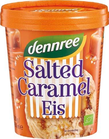 Verfeinern Sie frische Früchte, Waffeln oder Crêpes mit unwiderstehlichen Eissorten von dennree. Das Cookie Dough Eis vereint Keksteigstückchen mit leckerer Bourbonvanilleeiscreme. Abgerundet wird der zartschmelzende Charakter mit Zartbitterschokoladenstückchen und einer Schokoladensauce. Beim Salted Caramel Eis trifft süß auf salzig: die cremige Karamelleiscreme und die Karamellsauce sind mit einer feinen Salznote veredelt. Cremiger