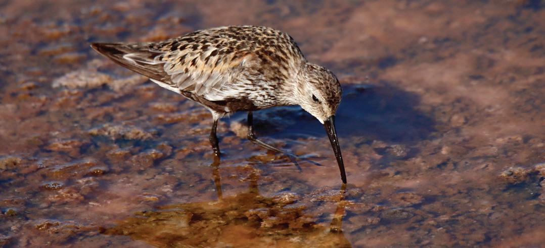 This is a proper road shared by both trekkers and vehicles, so be on your alert while enjoying the scenic coast which in these parts is a chequerboard of rock-cut saltpans, which extend right up to the shore. For the past 350 years, these saltpans have been worked by generations of different families, and are still producing salt today! Please avoid stepping onto them as they are private property. But while out of bounds for humans, the saltpans attract an array of bird species, mostly waders like Dunlin and scarcer species like Ruddy Turnstone, Kentish Plover and Sanderling, recorded annually here from summer to mid-October. On your left side vegetation consists mainly of salt-tolerant trees such as African Tamarisk and low-lying shrubs like Golden Samphire. In autumn these areas are frequently patrolled by hovering Common Kestrel and Lesser Kestrel, which peak in numbers from early to midOctober.