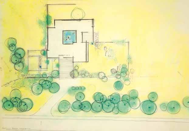 The definitive plan for Hugo Mann’s estate includes all the Japanese elements previously sketched: the Japanese-designed atrium, the magnolia, and the “teahouse”.