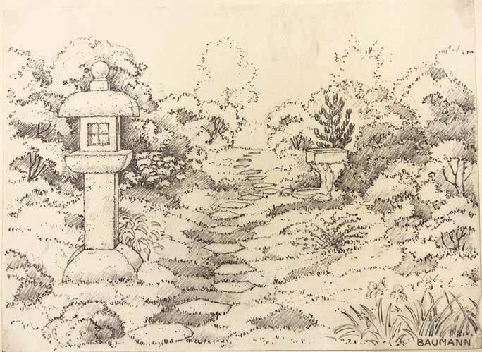 Albert Baumann (1891–1976), who was director of horticulture at Oeschberg Cantonal Horticultural School from 1920–1957, made a name for himself as a garden architect in the field of reform garden architecture. At first glance, one would not credit him with an affinity for Japanese culture; however, with the exception of Heini Mathys, none of the other landscape architects whose estates are in the ASLA possessed such a large number of books on traditional Japanese garden design.