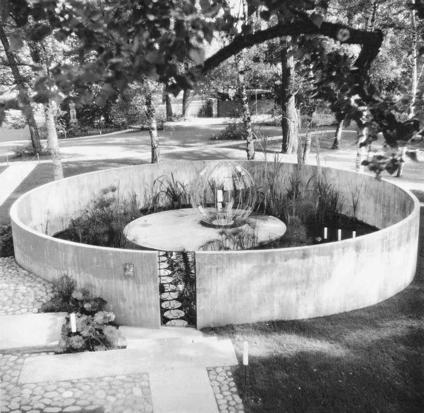 He oscillated between geometric and organic concepts, opting for the former for the headquarters of the International Business Machines Corporation (IBM) in Rüschlikon, Zurich, in 1962 [→ p. 134–136, 254, 256, bottom] , for the Fondli School grounds in Dietikon in 1966, [ → p. 244, top] and for the courtyard of the mechanicaltechnical department of the Gewerbeschule in Zurich in the same year [ → p. 299] , and for the latter for the grounds of the housing estate for the Swiss Life Insurance Company Pax in Wohlen, Aargau, in 1983 [→ p. 241], and for the Ungricht Garden around a single-family house in 1982 [ → p. 245]. In some cases, he would work with both approaches in one and the same project – most evidently in the design of the grounds of the Swiss