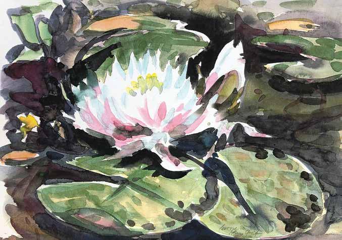Twenty years after sketching the first plans, Graf produced a watercolour of the water lilies in the pond of the “Diemant Garden” in Zollikofen, created in 1977.